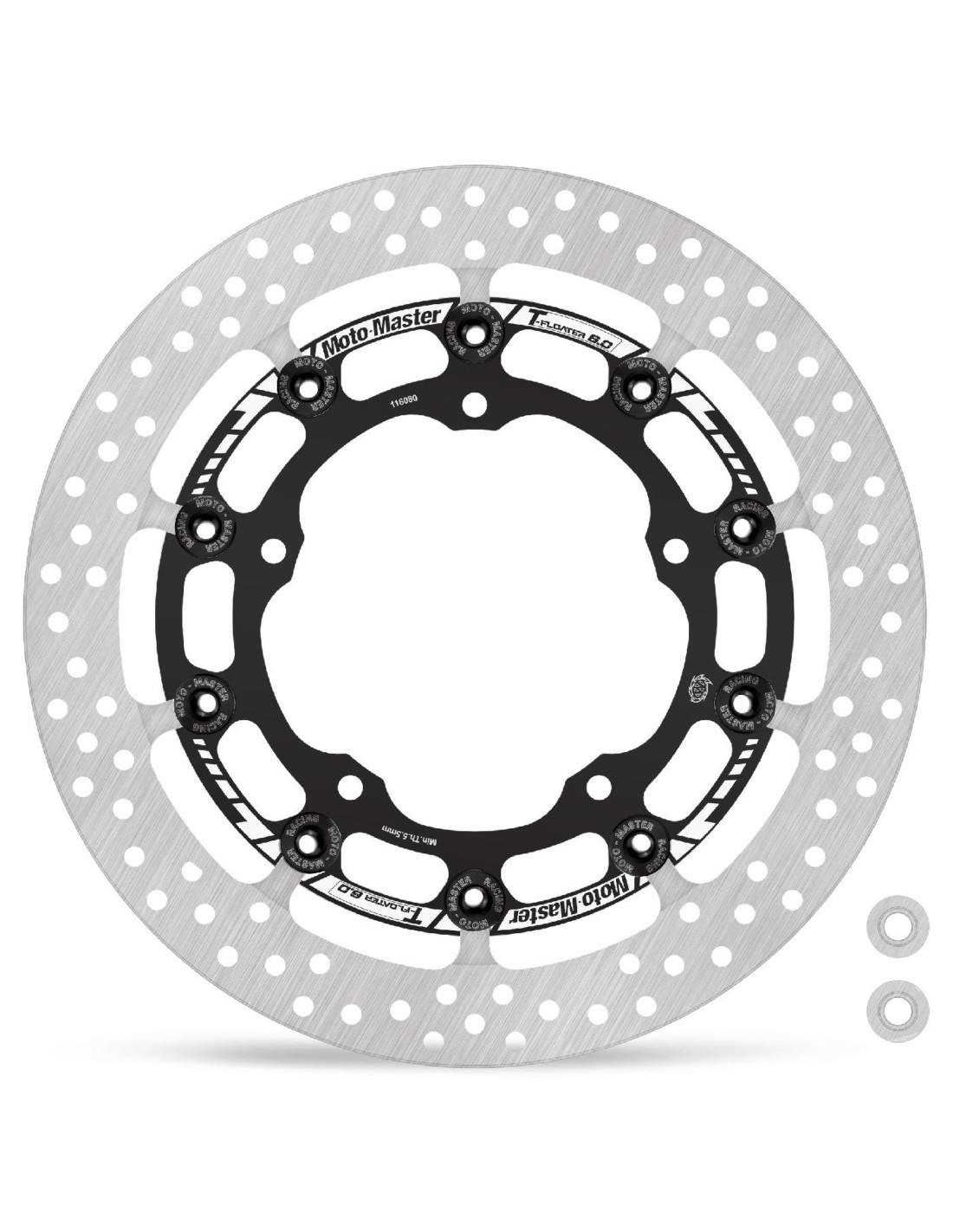 HALO T-FLOATER FULL FLOATING PROFESIONAL RACING 314001 OVERSIZE KIT YAMAHA 320mm Juego de discos de 6mm El kit incluye: 2 discos flotante en T HALO 116080, 4 anillos espaciadores de calibre (pernos más largos no incluidos) Un nuevo estándar en discos de freno redondos no originales Aro exterior en acero inoxidable duradero de calidad premium cortado por láser y superficie de precisión Los orificios de ventilación están dimensionados y posicionados con precisión para garantizar una disipación uniforme del calor, incluso bajo un esfuerzo térmico grande, mientras que la superficie de contacto de la pastilla de freno se mantiene limpia Los discos de freno delanteros Halo son para izquierda y derecha a menos que se indique lo contrario