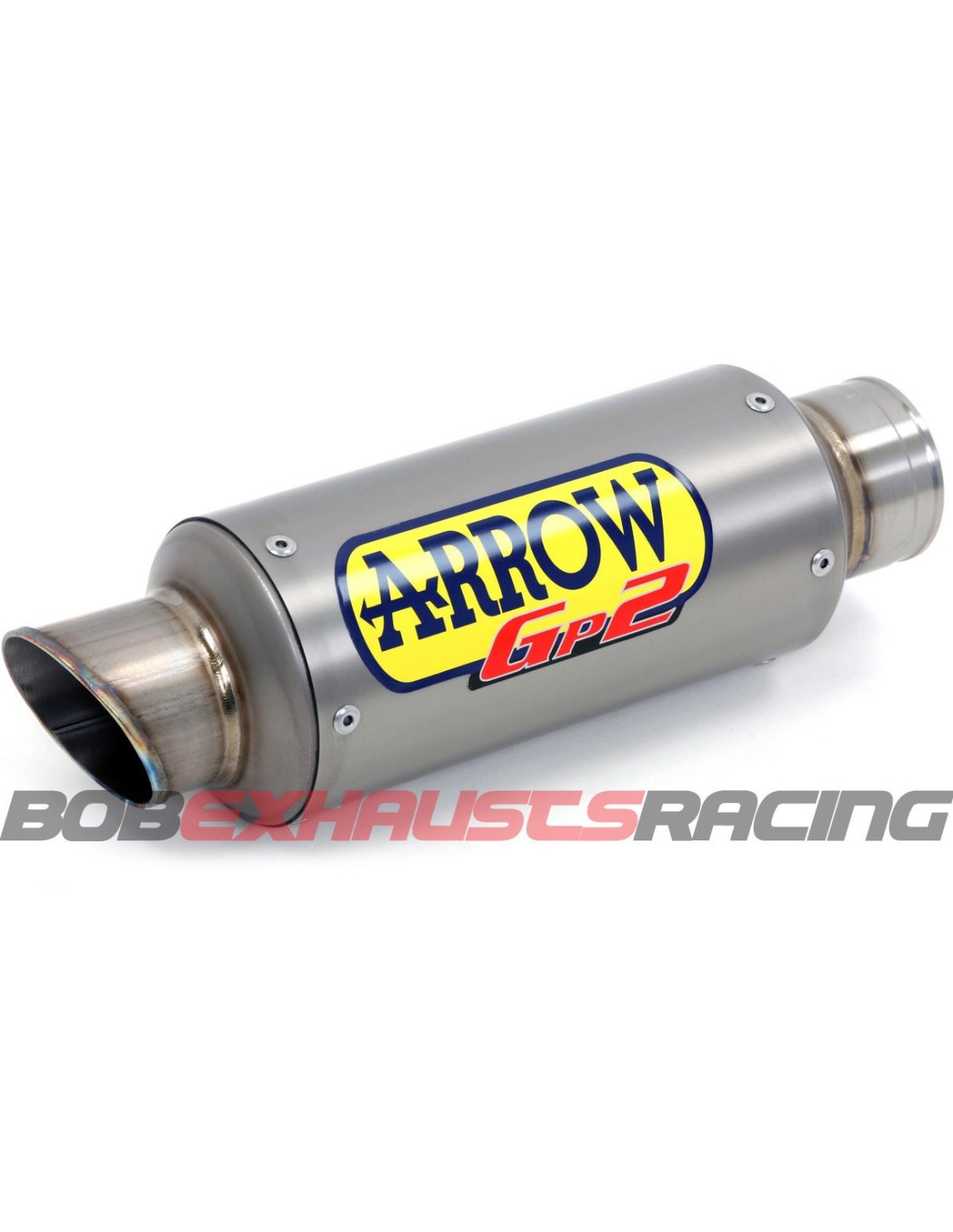 Terminal para colector racing. Los escapes GP2 nacen de la experiencia y el estilo de los sistemas desarrollados para el campeonato mundial Moto2, con el objetivo de satisfacer a los motociclistas que quieren montar en sus motos deportivas, algo especial. Los escapes GP2 están disponibles en la versión slip-on (silencioso y conector) y la característica principal es la ligereza del silencioso hecho completamente en titanio, de forma cilíndrica, pequeño y corto con salida de gases derecha y la terminación es de corte transversal. El incremento de potencia es sustancial y el ruido emitido es efectivamente “agresivo”. La abrazadera está realizada en estilo Racing y sólo para esta línea ha sido proyectado y renovado un nuevo logotipo Arrow. Los escapes GP2 están disponibles sólo en la versión Racing, pero es posible adquirir por separado el db-killer diseñado para estos escapes. Caracteristicas Valores material del cuerpo acero inoxidable Dark, titanio material del terminal posterior acero inoxidable, titanio material interno silencioso acero inoxidable, titanio longitud del cuerpo 200 diámetro de entrada 54 diámetro de salida 58