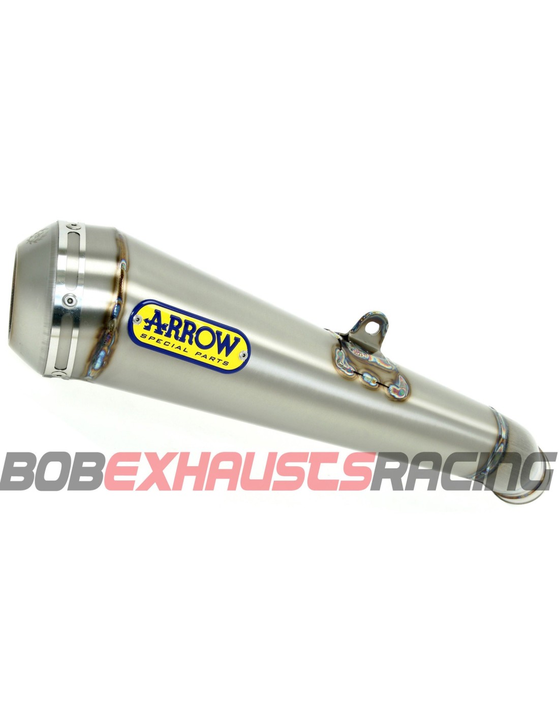Nace una nueva tendencia cuando a principios del año 2000 empezaron a utilizarse en Moto GP los silenciosos con forma de trompeta. Debido a que los clientes lo demandaban constantemente, Arrow empezó a trabajar en este tema y como resultado nace la línea Pro-Race. Un silencioso Pro-Race se fabrica montando un trozo de cono junto con una parte final hecha de la sección de un cilindro (diámetro 98mm). Debido al diseño de los silenciosos, en la mayoría de los casos no ha sido posible adaptar los escapes Pro-Race a todas las motos y porque el poco volumen interno limita mantener los niveles de ruido bajo control. Además por su forma de cono, los silenciosos Pro-Race se sujetan al marco con unos puntos de soldadura, por lo que no es posible emplear una abrazadera de carbono o acero inoxidable, tal como se hace con los silenciosos de cuerpo regular. Como de costumbre el montaje de los silenciosos Pro-Race se hace con soldadura de tecnología TIG. Los silenciosos Pro-racing están disponibles en una versión todo en titanio o en la nueva aleación especial de acero inoxidable (Nichrom), en versión racing u homologada con Db-killer.