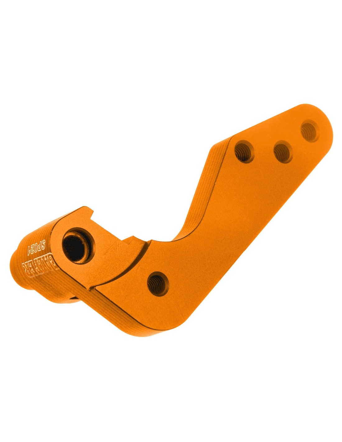 Soporte adaptador de pinza para discos de freno sobredimensionados; fabricado mediante mecanizado, estampación o forjado en duraluminio ligero pero resistente. Diseñado para garantizar un rendimiento óptimo y la máxima seguridad.