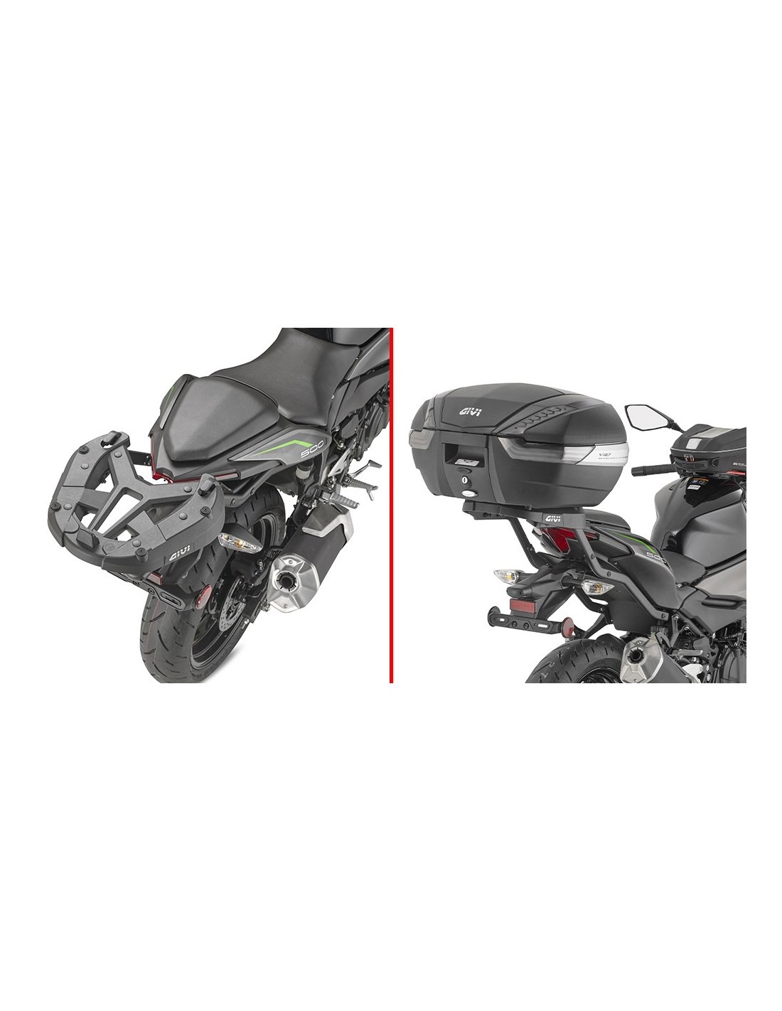 Portaequipajes trasero específico para maletas superiores MONOKEY® o MONOLOCK®, compatible con las placas MONOKEY® M5, M7, M8A, M8B, M9A, M9B o M10, o con las placas MONOLOCK® M5M o M6M, o con el soporte de aluminio para bolsas EX2M. La combinación con las placas M8A, M8B, M9A y M9B no permite la instalación de un kit de luz de freno ni de un dispositivo de apertura remota.