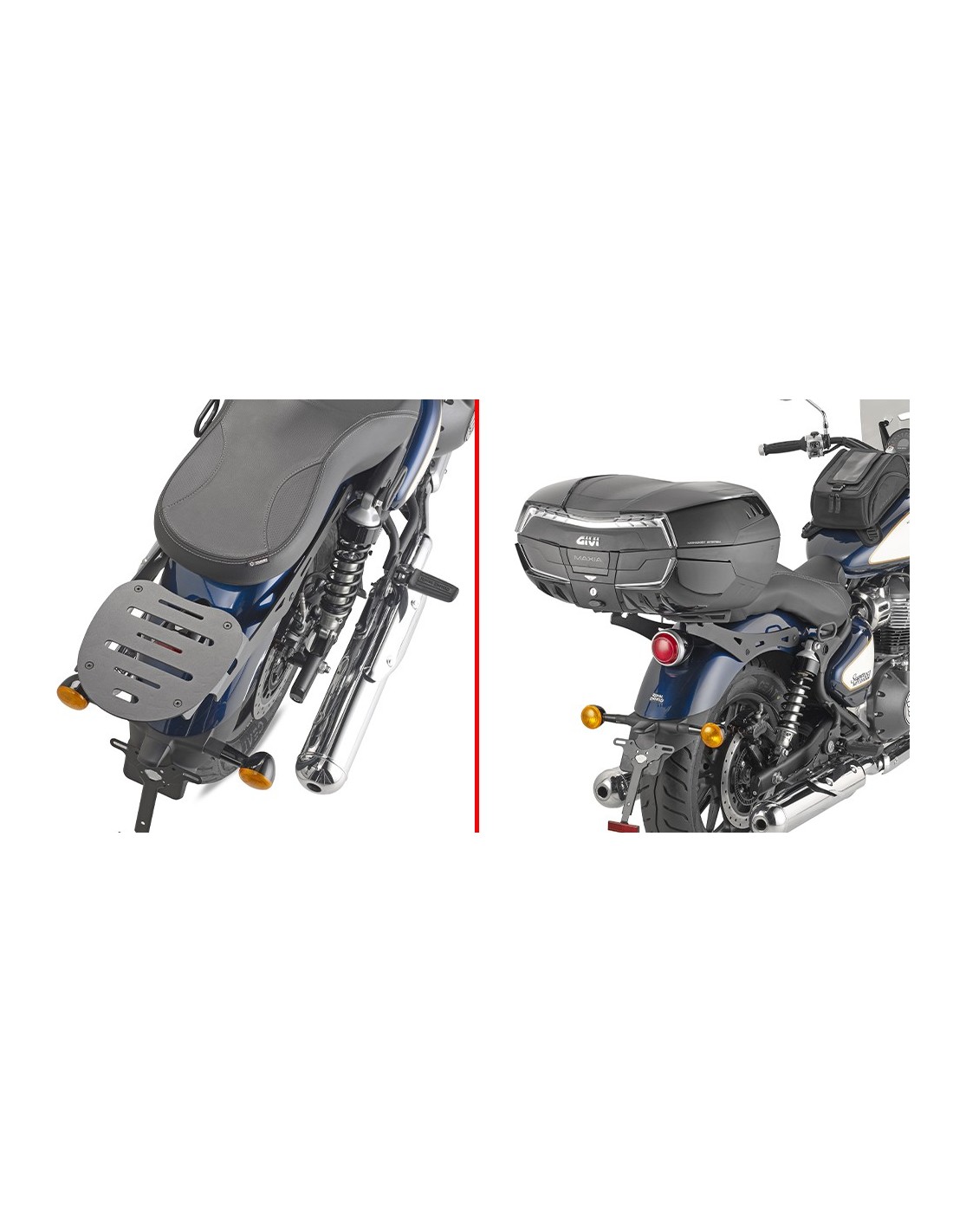 Portaequipajes trasero específico para top cases MONOKEY® o MONOLOCK® compatible solo con versiones equipadas con asiento Touring / es necesario quitar el respaldo original si está presente / combinable con la placa MONOKEY® M5, M7, M8A, M8B, M9A, M9B o M10 o con la placa MONOLOCK® M5M o M6M, o con la placa ya incluida en los top cases MONOLOCK®, o con el portabolsas de aluminio EX2M / la combinación con M8A, M8B, M9A y M9B no permite el montaje de un kit de luces de freno en la maleta y/o un dispositivo para la apertura de la maleta con control remoto