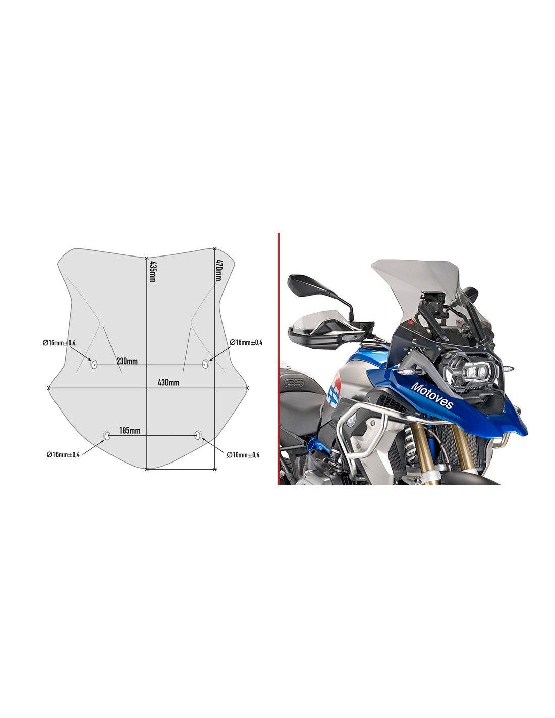 Cúpula ahumada específica 43,5 x 43 cm (H x L) para combinar con los herrajes D5131KIT / 5 cm más alta que la original R1200GS-R1250GS y del mismo tamaño que la R1200GS Adventure-R1250GS Adventure