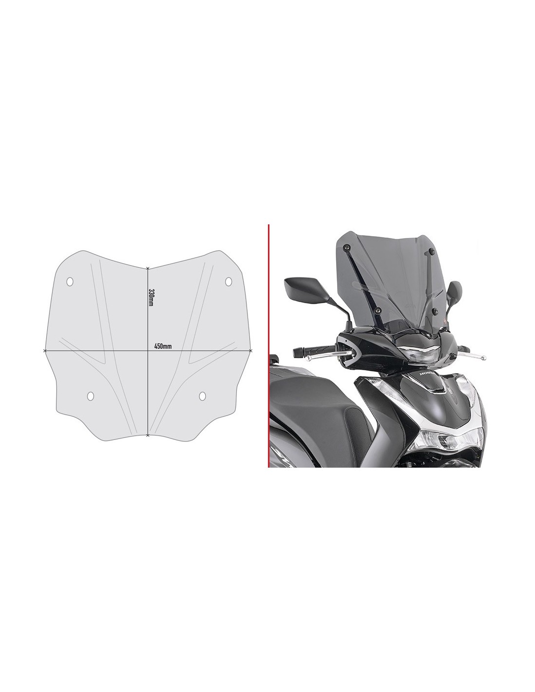 Parabrisas ahumado específico, para montar sobre los accesorios de parabrisas originales Honda opcionales, 33 x 45 cm (alto x largo)