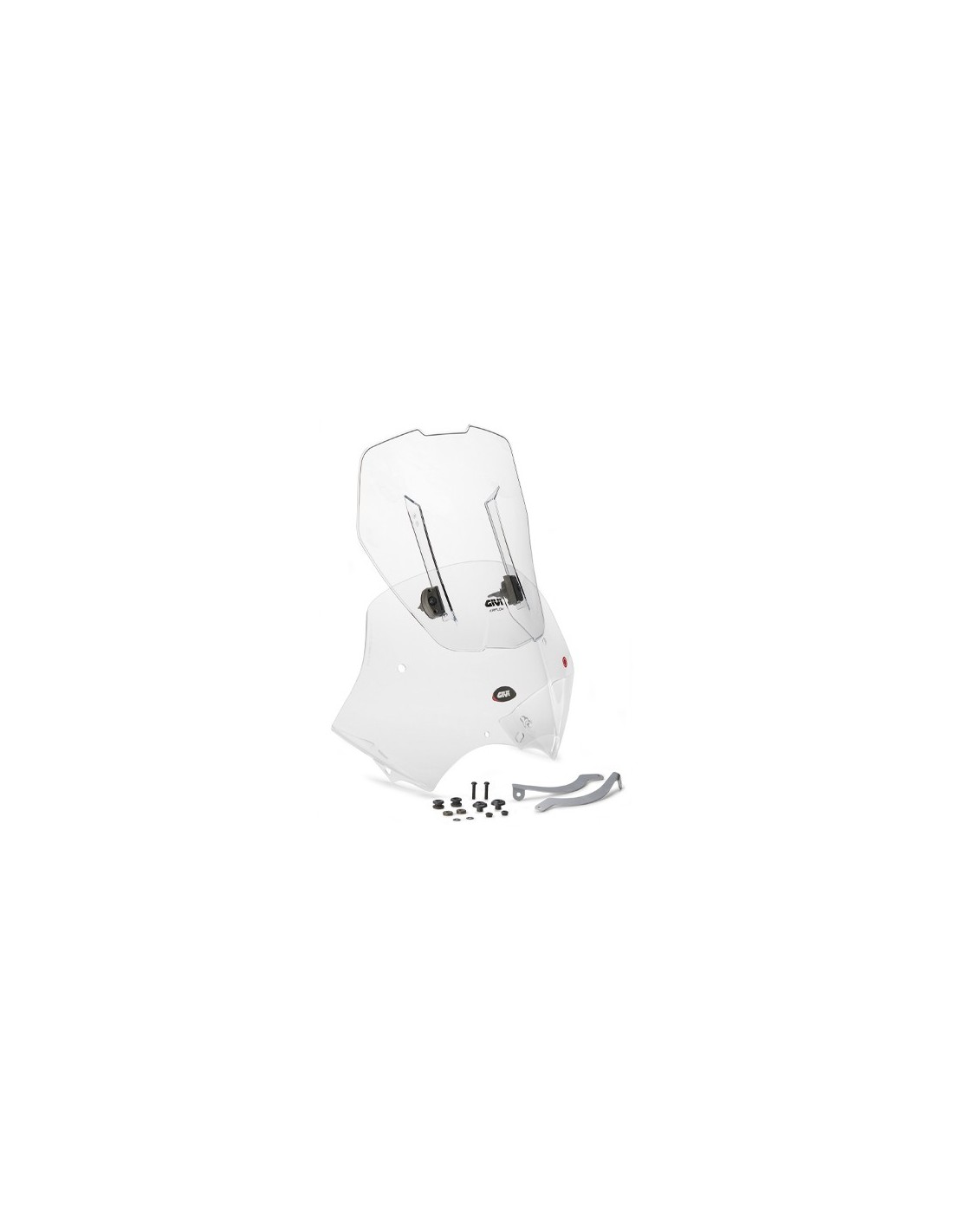 Parabrisas deslizante AIRFLOW transparente específico. Altura máxima 54 cm (12 cm de recorrido) Ancho 54 cm incluido kit de montaje específico / para montar en lugar del parabrisas original