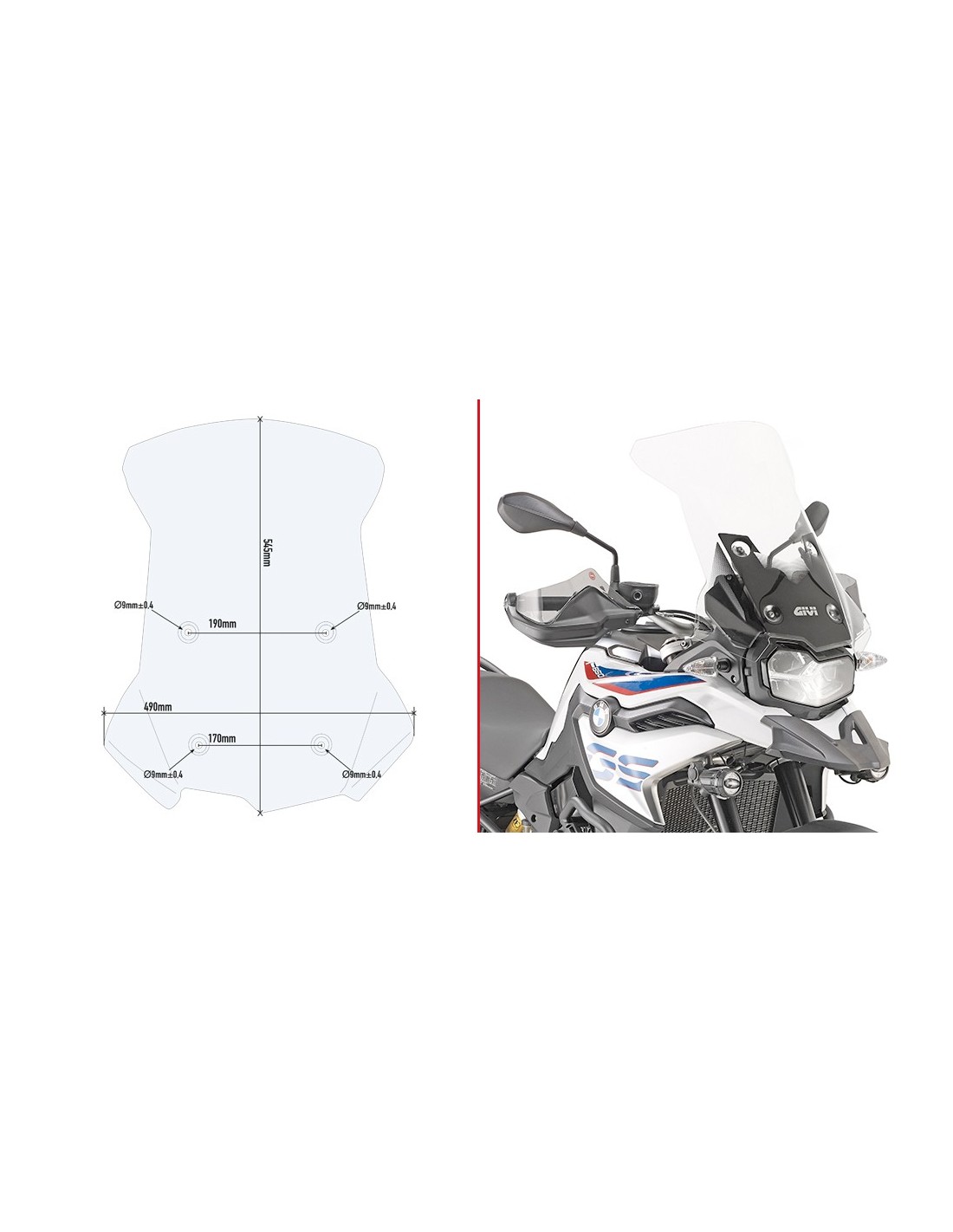 Parabrisas transparente específico 54,5 x 49 cm (H x L) para combinar con los herrajes D5129KIT / 27 cm más alto que el original