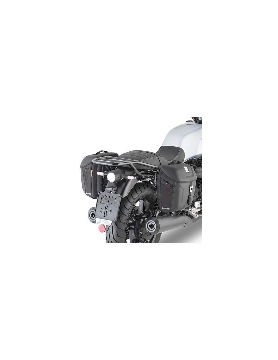 Soporte específico para un par de alforjas laterales MT501 (Metro-T Line), o alforjas blandas no compatibles con las versiones V7 Special Edition y V7 Stone Ten equipadas con escape Moto Guzzi by Arrow. Para montarlo en la versión V7 Special, es necesario retirar el asa original y combinarla con el kit 8206KIT.