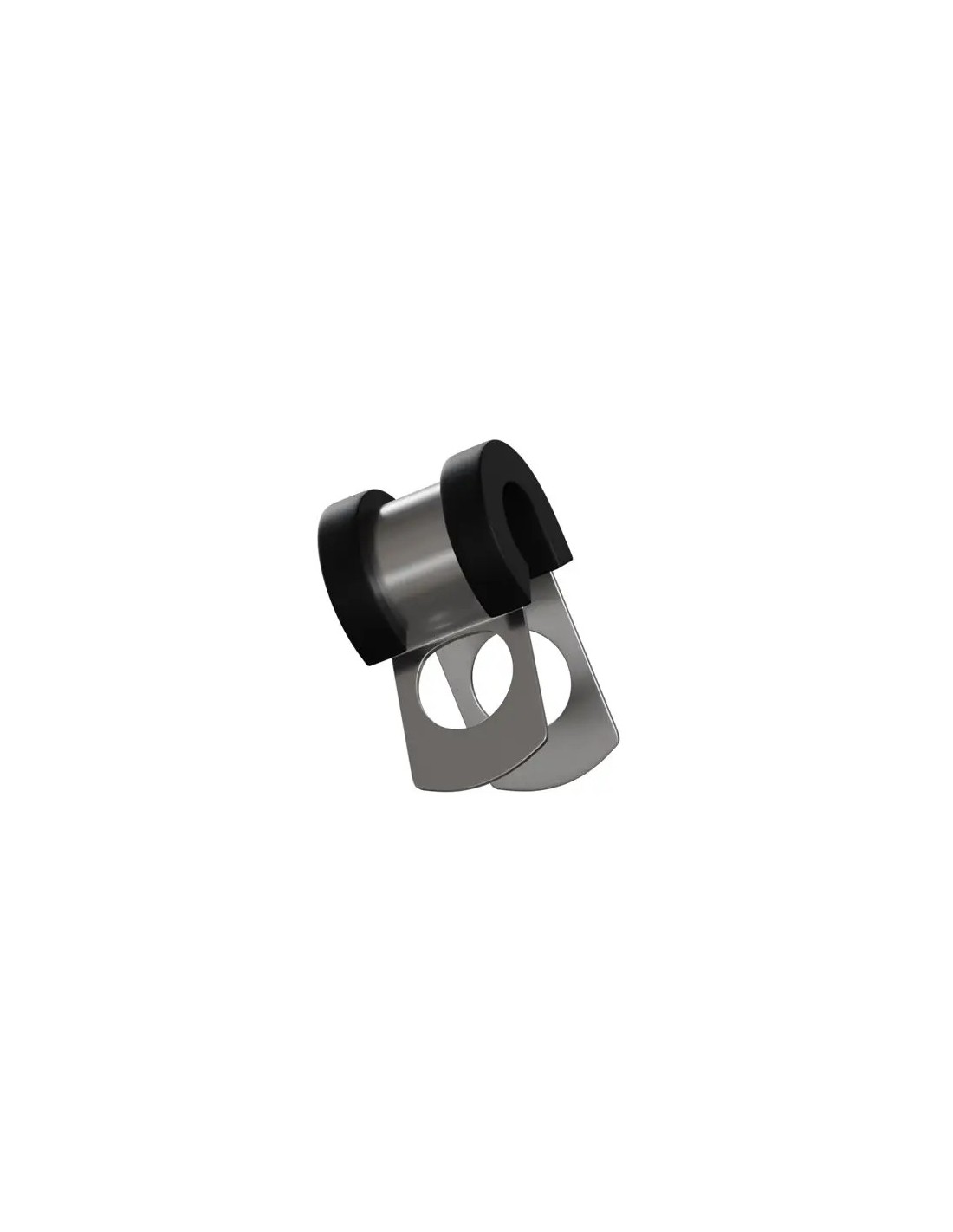 Abrazadera de aluminio para manguera con extremos de goma para la ubicación de la manguera.