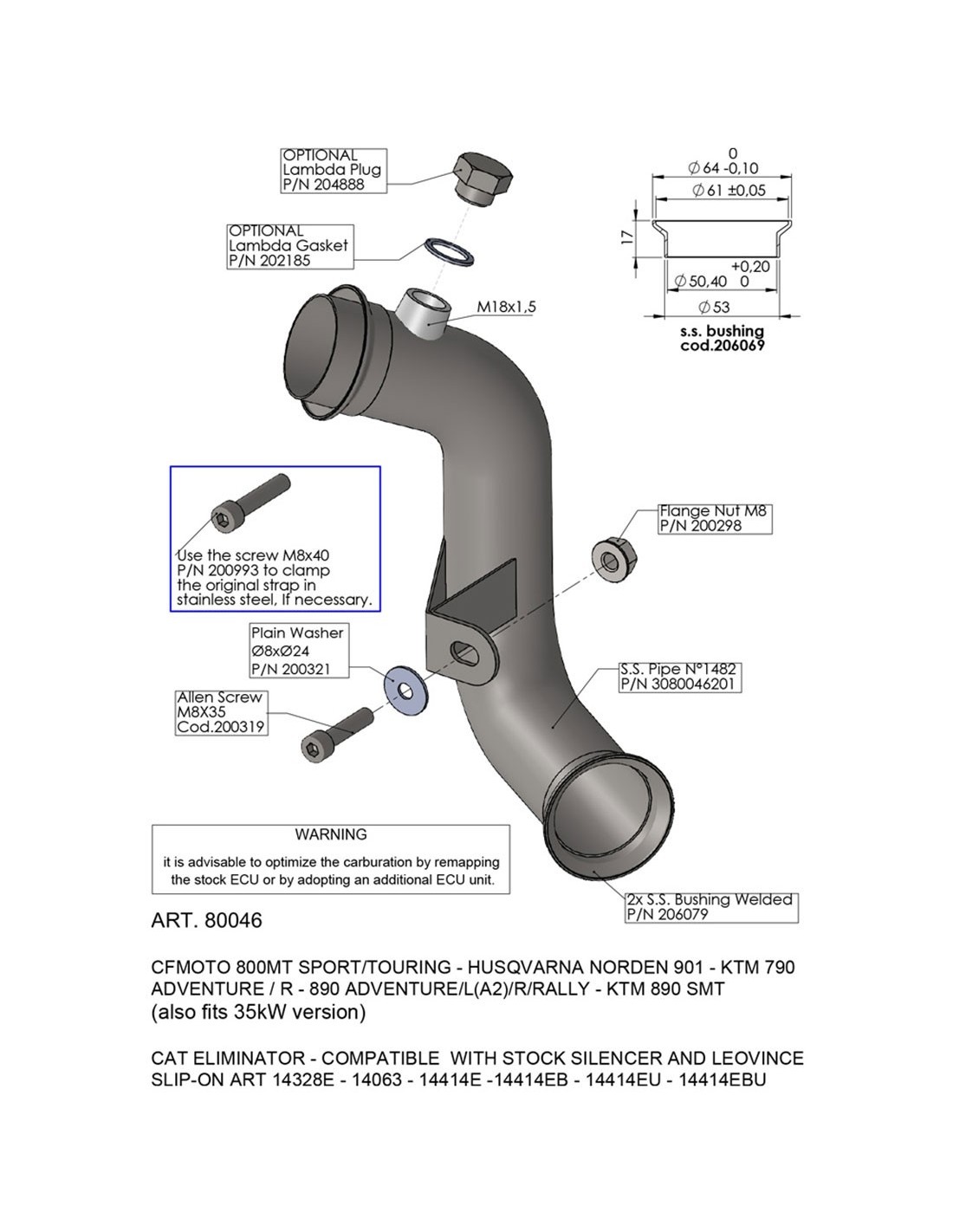 LEO VINCE TUBO SUPRESOR DE CATALIZADOR 80046