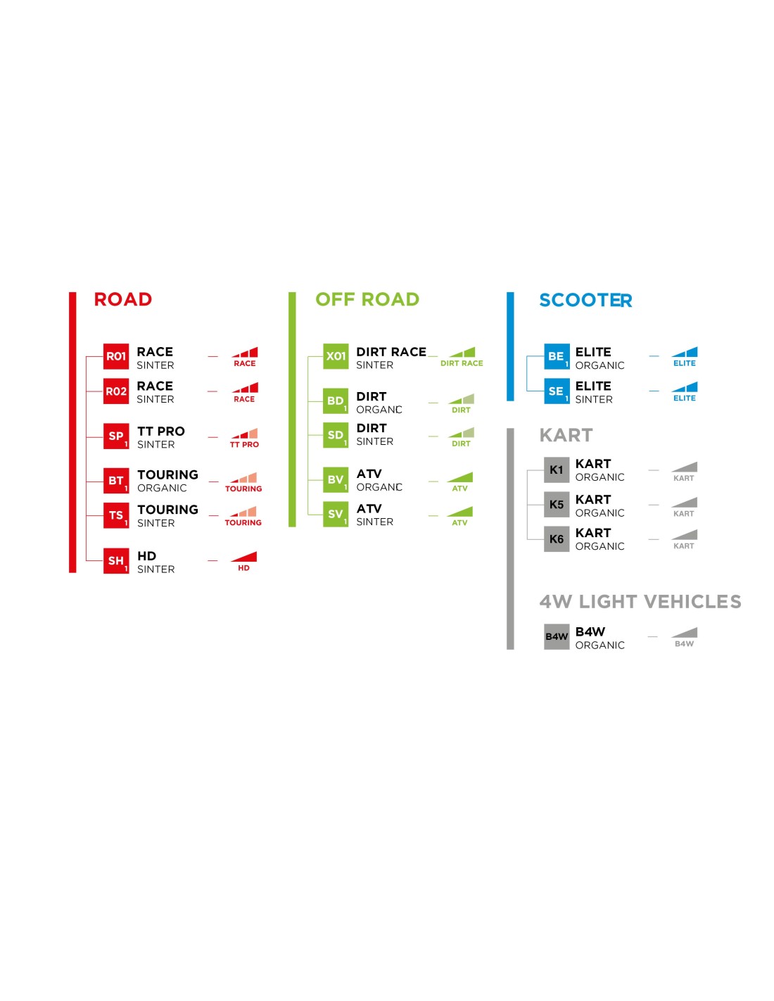 Compuesto derivado de la gama Racing fabricado con Superaleación a base de níquel, coeficiente de fricción HH+, sin efecto fade.