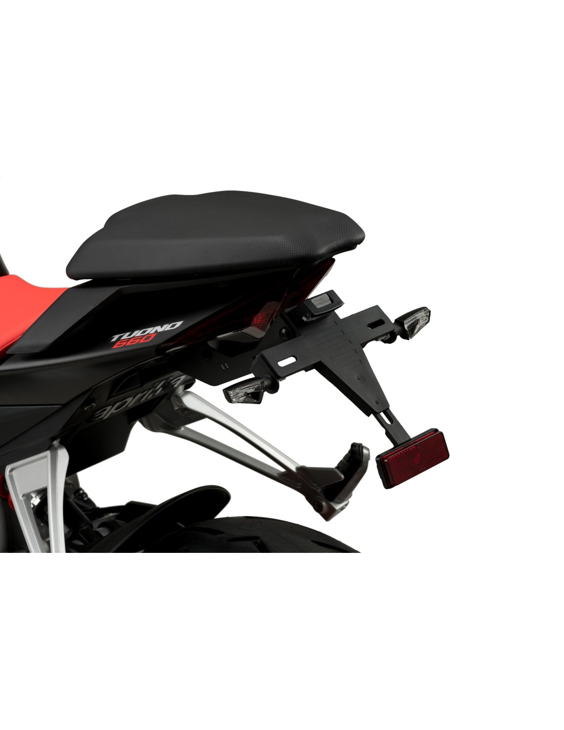 Sustituye el portamatrículas original de tu moto por el soporte porta matrículas de Puig, que gracias a su ubicación elevada confiere un aspecto deportivo a tu motocicleta.