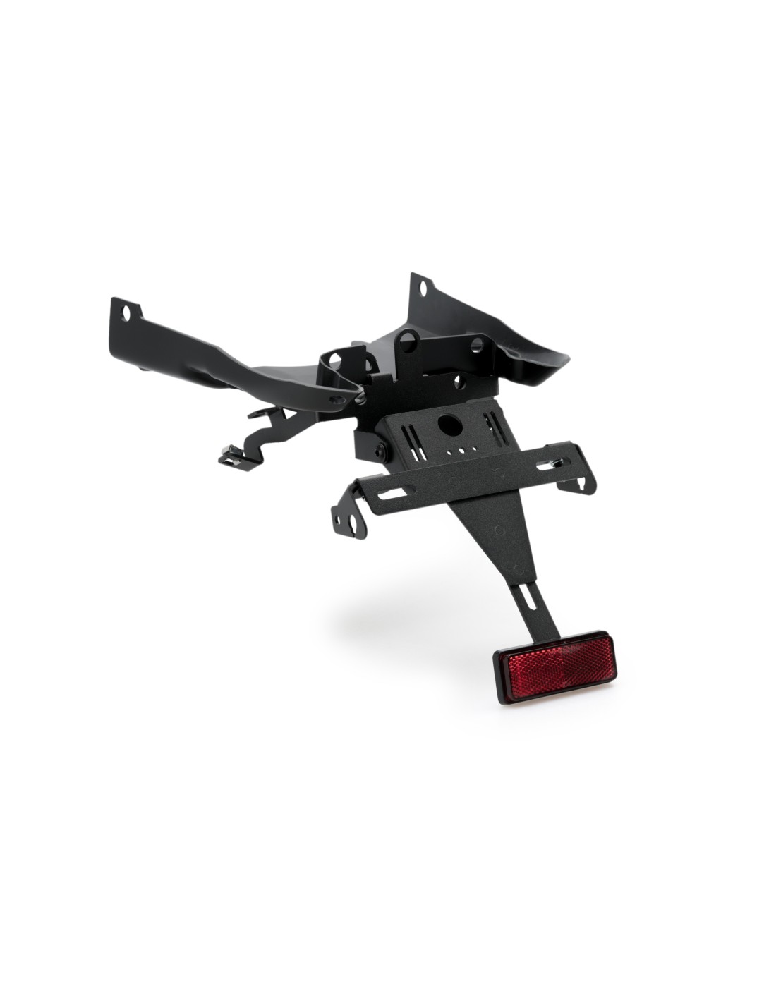 Sustituye el portamatrículas original de tu moto por el soporte porta matrículas de Puig, que gracias a su ubicación elevada confiere un aspecto deportivo a tu motocicleta.