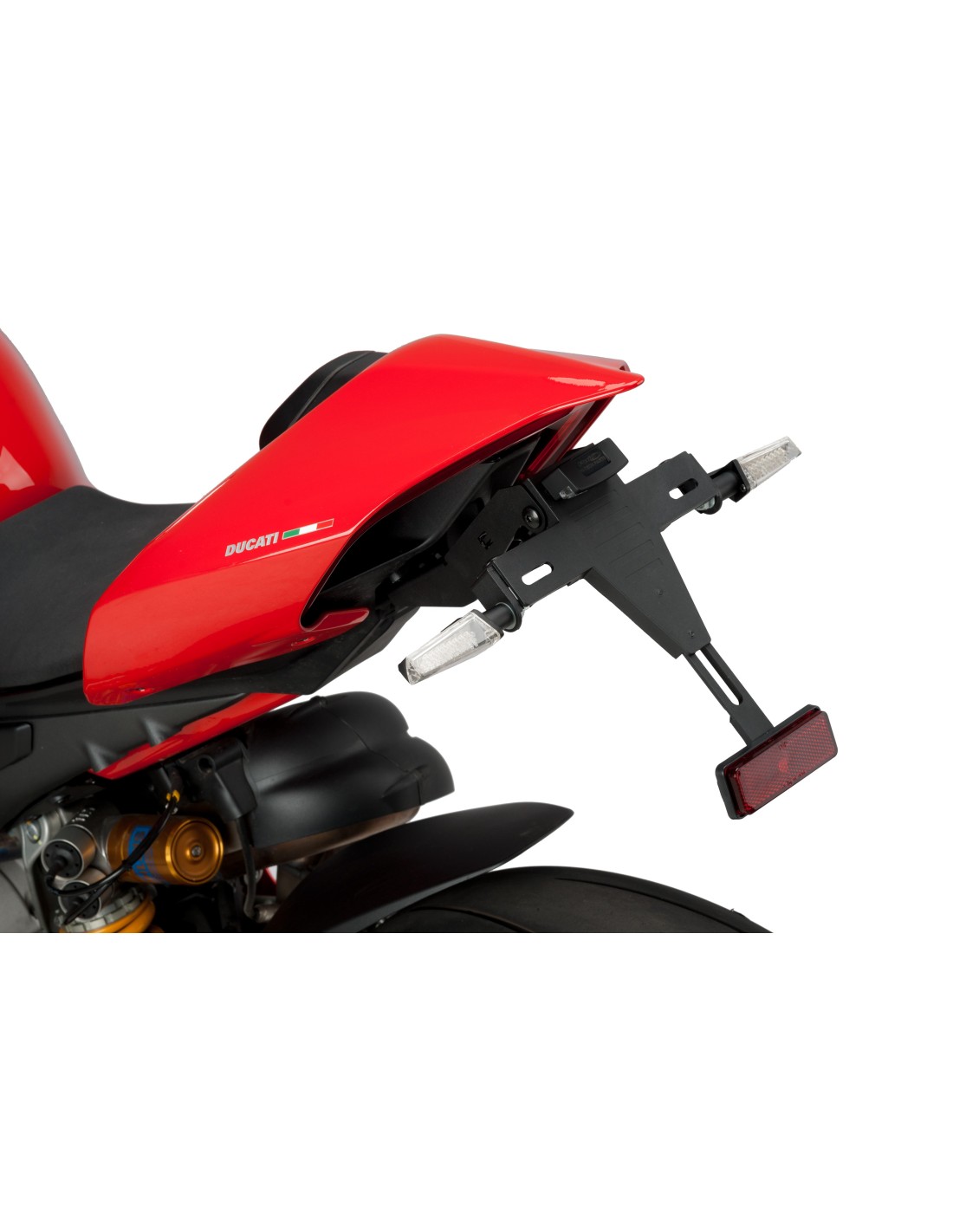 Sustituye el portamatrículas original de tu moto por el soporte porta matrículas de Puig, que gracias a su ubicación elevada confiere un aspecto deportivo a tu motocicleta.