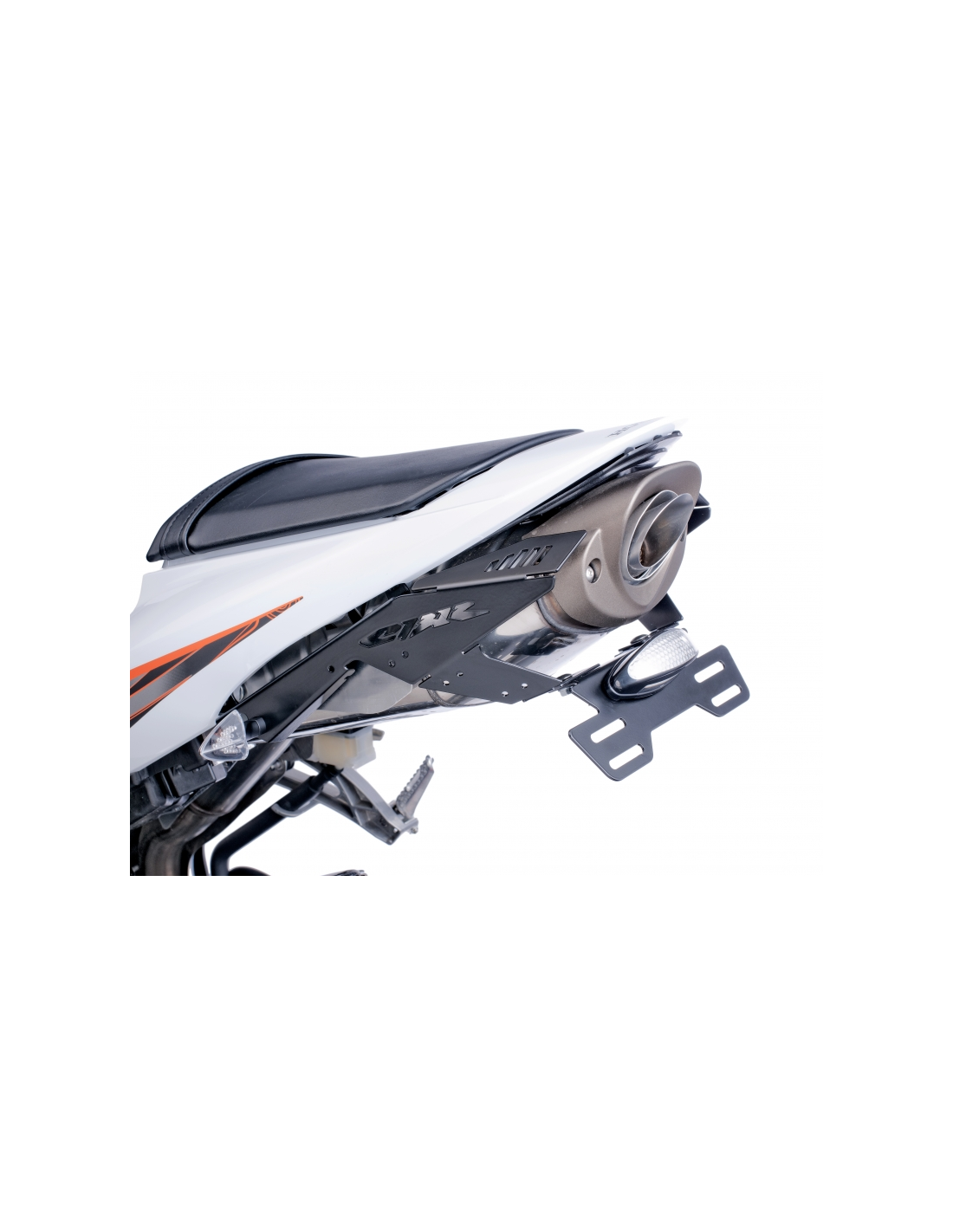 Sustituye el portamatrículas original de tu moto por el soporte porta matrículas de Puig, que gracias a su ubicación elevada confiere un aspecto deportivo a tu motocicleta.