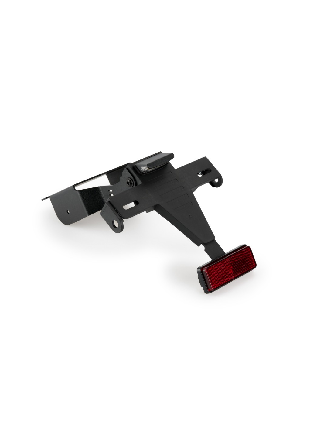 Sustituye el portamatrículas original de tu moto por el soporte porta matrículas de Puig, que gracias a su ubicación elevada confiere un aspecto deportivo a tu motocicleta.