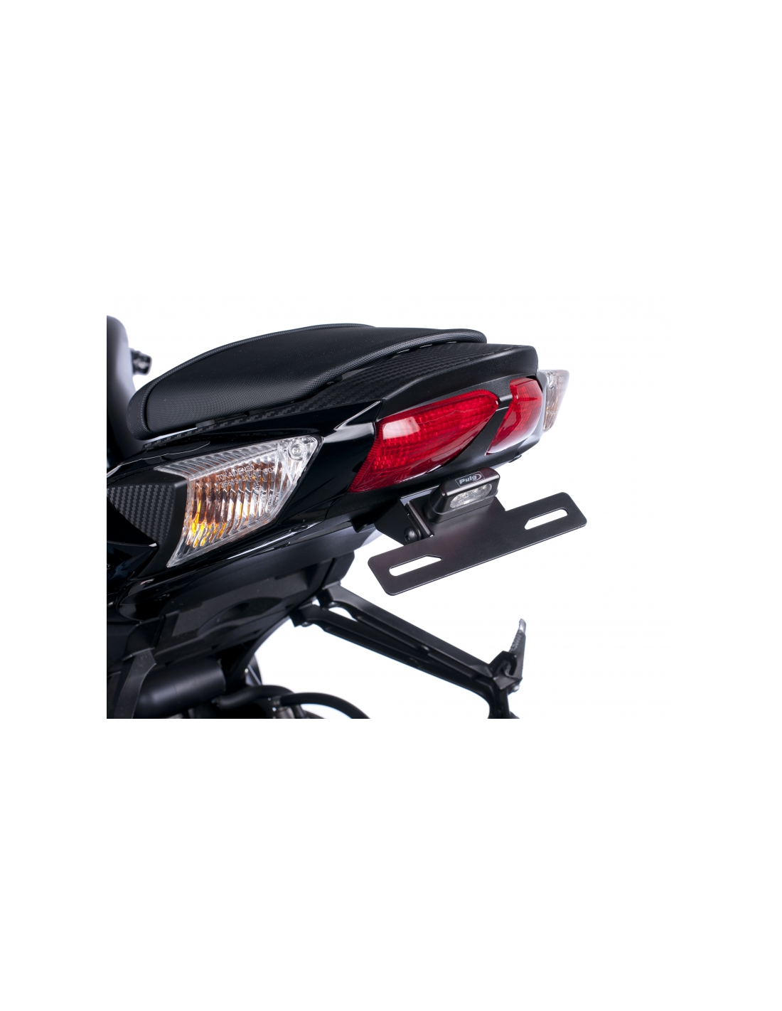 Sustituye el portamatrículas original de tu moto por el soporte porta matrículas de Puig, que gracias a su ubicación elevada confiere un aspecto deportivo a tu motocicleta.