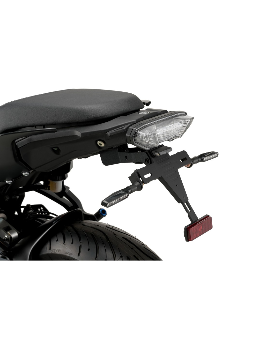 Sustituye el portamatrículas original de tu moto por el soporte porta matrículas de Puig, que gracias a su ubicación elevada confiere un aspecto deportivo a tu motocicleta.