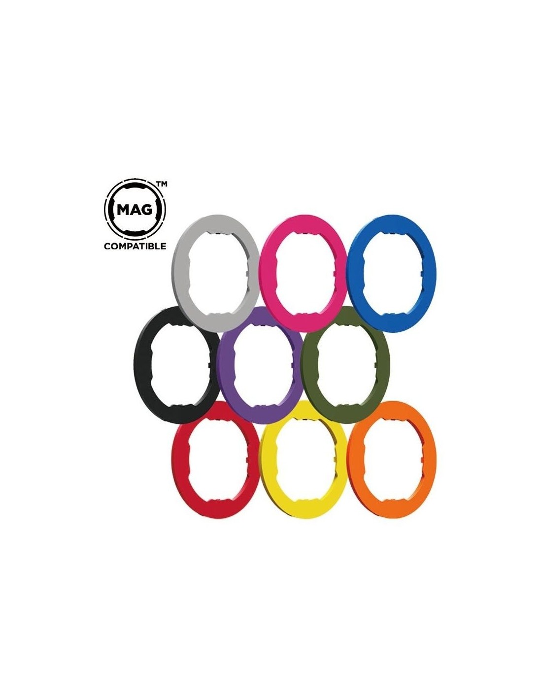 Personaliza el aspecto de tu Funda MAG Quad Lock con siete anillas de colores diferentes para elegir.