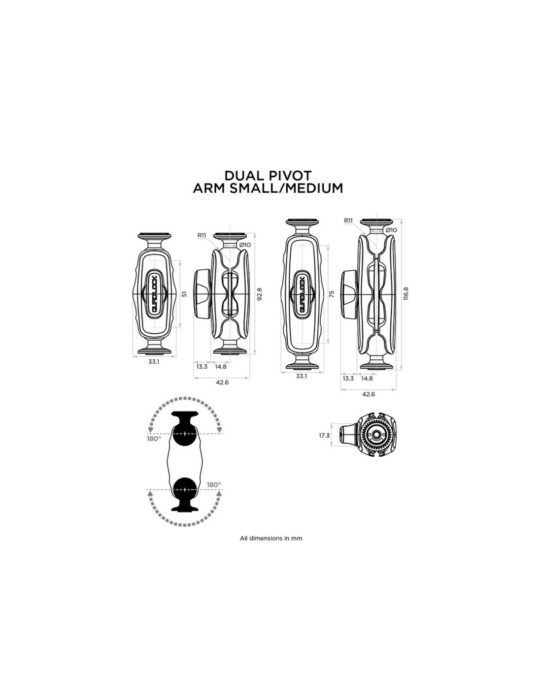 QUAD LOCK BRAZO DE DOBLE PIVOTE MEDIO QLP-360-DPM