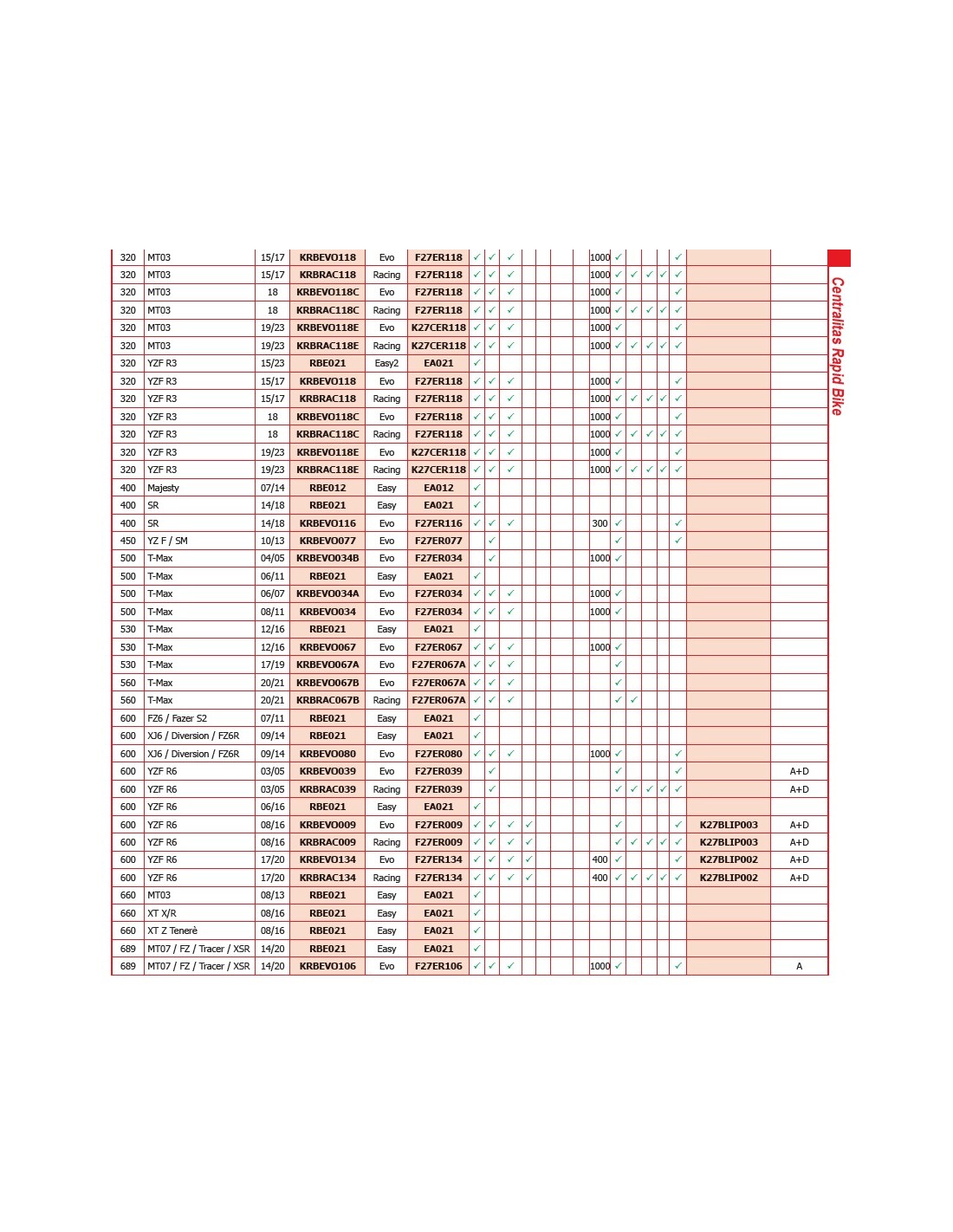 Los kits Rapid Bike incluyen la cenralita y el cable necesario. (1) Excepto modelos ABS, (2) Sólo para modelos Euro3, (3) Años 15/16 sólo modelo R,