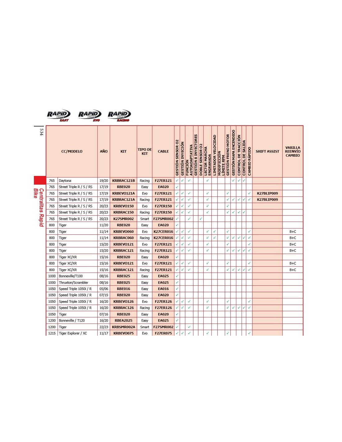 Los kits Rapid Bike incluyen la cenralita y el cable necesario. (1) Excepto modelos ABS, (2) Sólo para modelos Euro3, (3) Años 15/16 sólo modelo R,