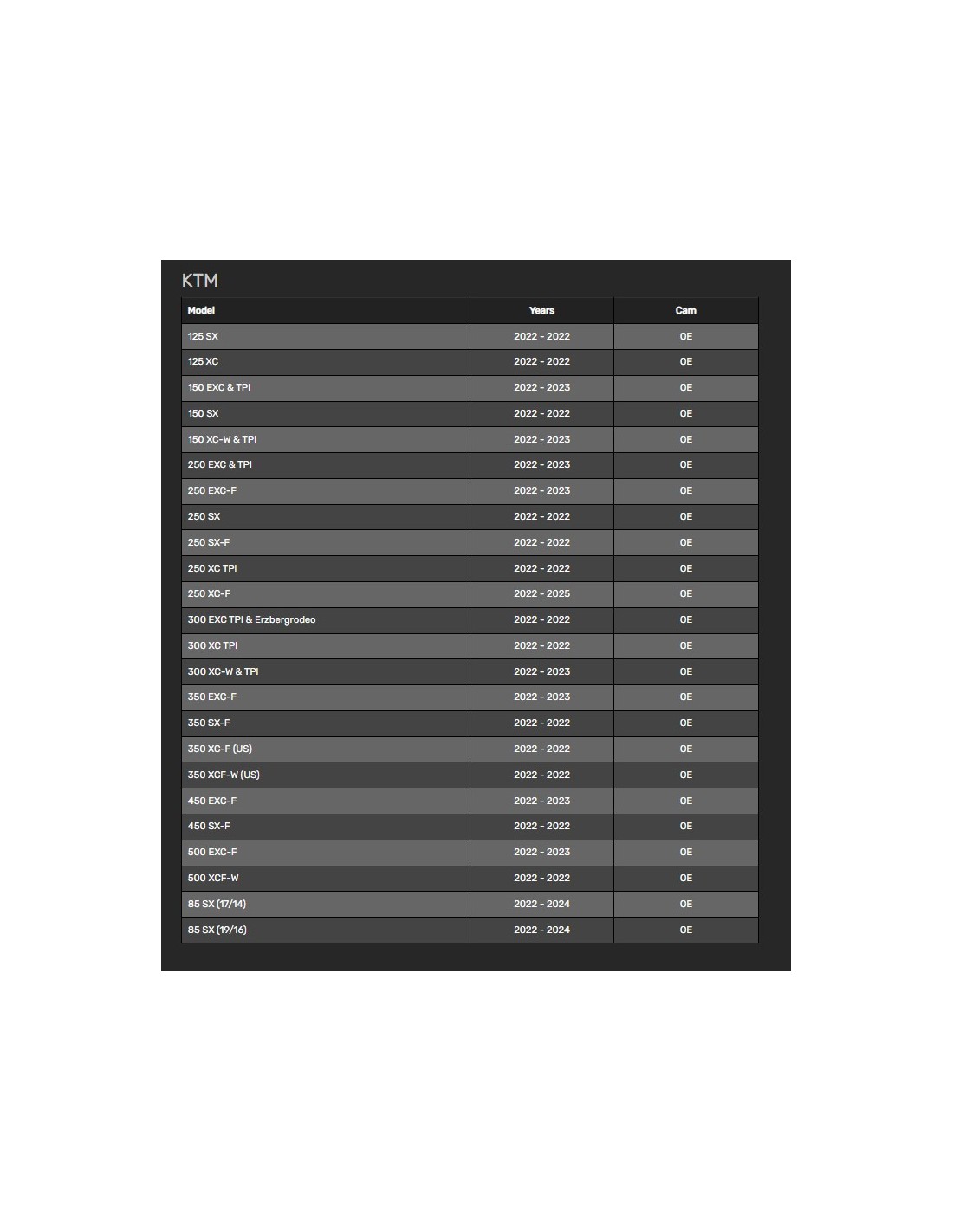 La mejor manera de encontrar ajustes para su motocicleta es usar Fit My Bike. Alternativamente, consulte la lista a continuación para obtener una lista completa de los ajustes de leva recomendados por Renthal