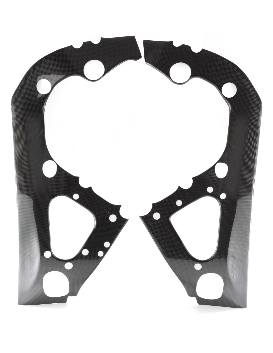 Las piezas de fibra de carbono están fabricadas con tejido de carbono liso de 160 g/m² con un sistema de resina epoxi de alta calidad, reforzado en los puntos de fijación con tejido de carbono.