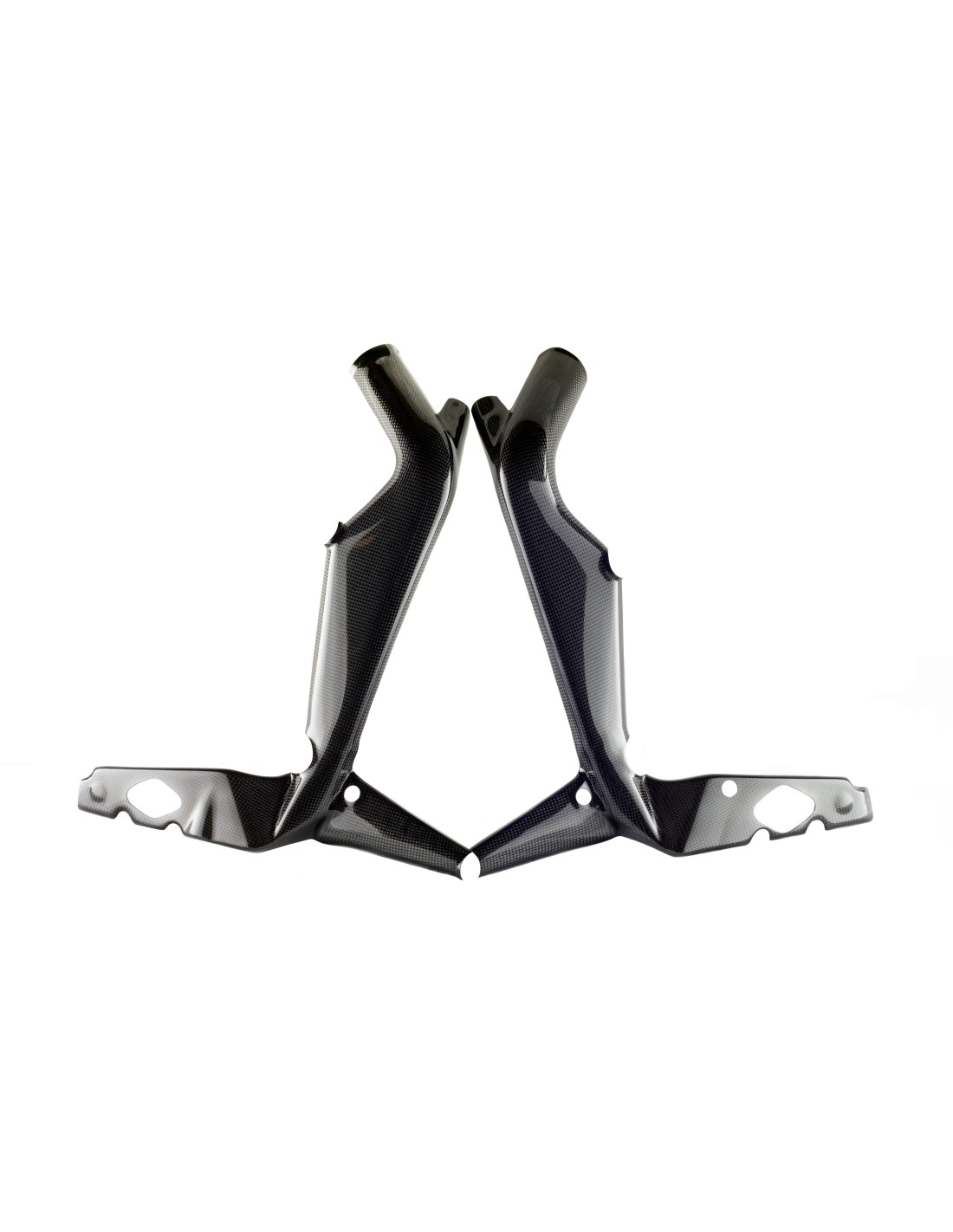 Las piezas de fibra de carbono están fabricadas con tejido de carbono liso de 160 g/m² con un sistema de resina epoxi de alta calidad, reforzado en los puntos de fijación con tejido de carbono.