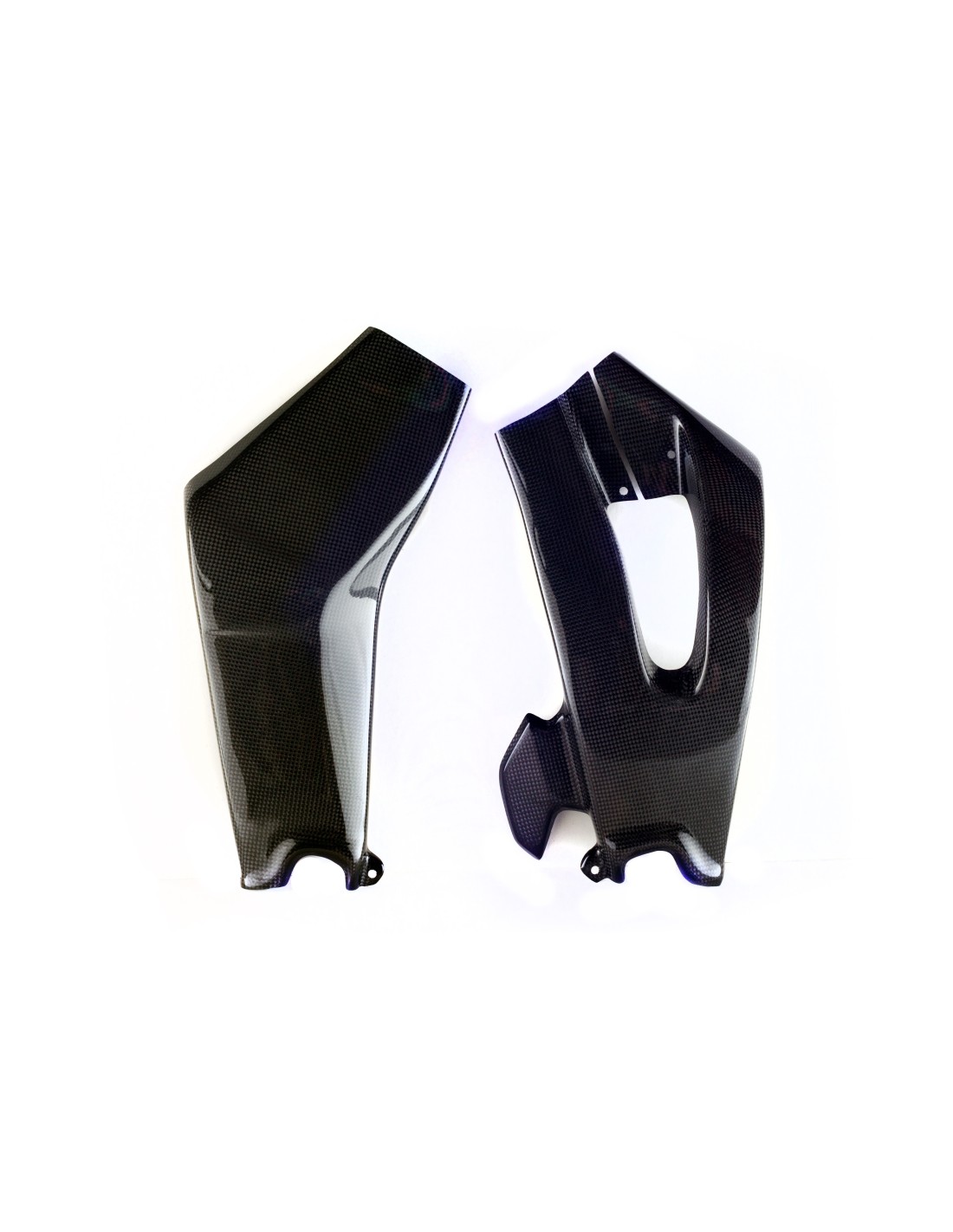 Las piezas de fibra de carbono están fabricadas con tejido de carbono liso de 160 g/m² con un sistema de resina epoxi de alta calidad, reforzado en los puntos de fijación con tejido de carbono.