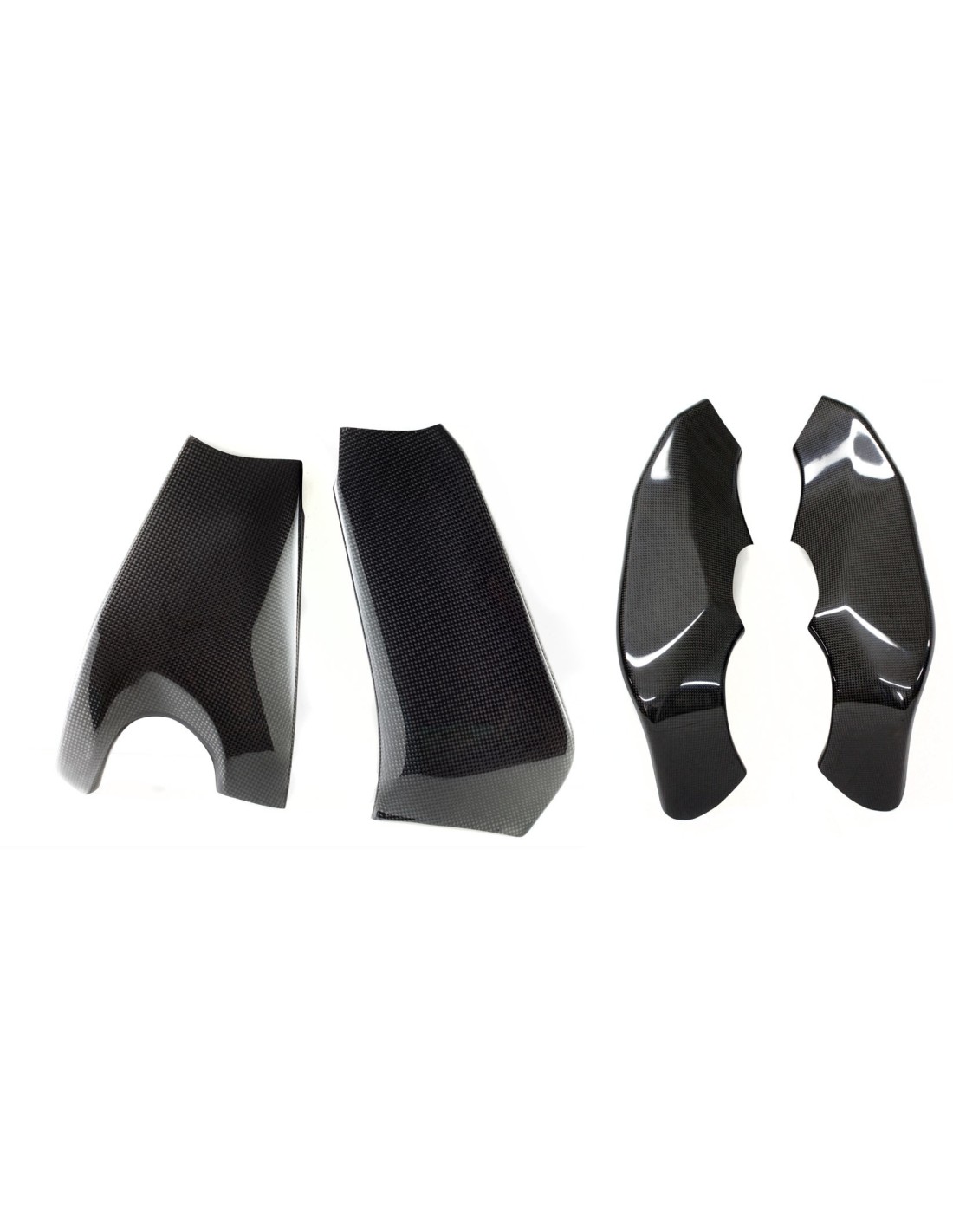 Las piezas de fibra de carbono están fabricadas con tejido de carbono liso de 160 g/m² con un sistema de resina epoxi de alta calidad, reforzado en los puntos de fijación con tejido de carbono.