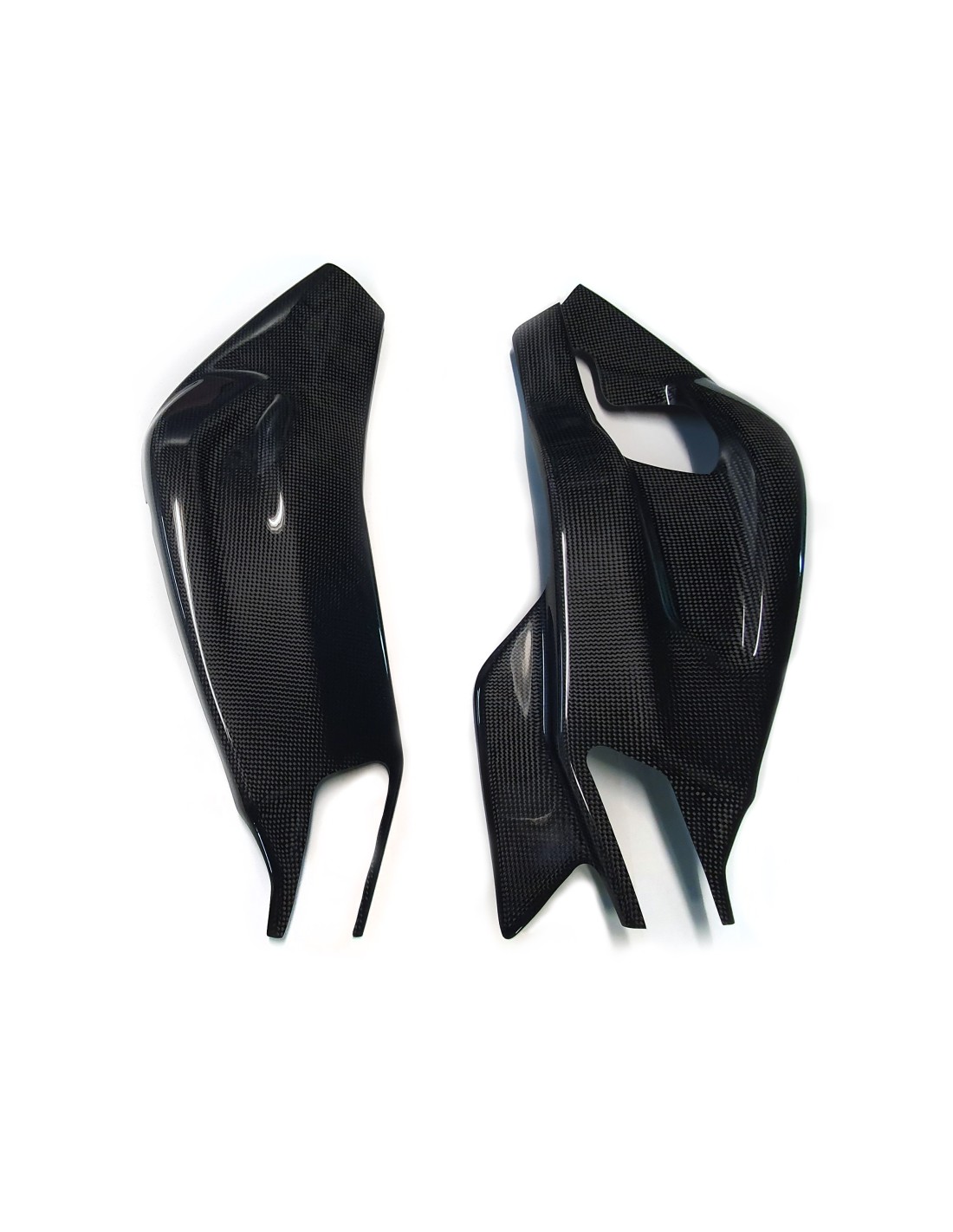 Las piezas de fibra de carbono están fabricadas con tejido de carbono liso de 160 g/m² con un sistema de resina epoxi de alta calidad, reforzado en los puntos de fijación con tejido de carbono.