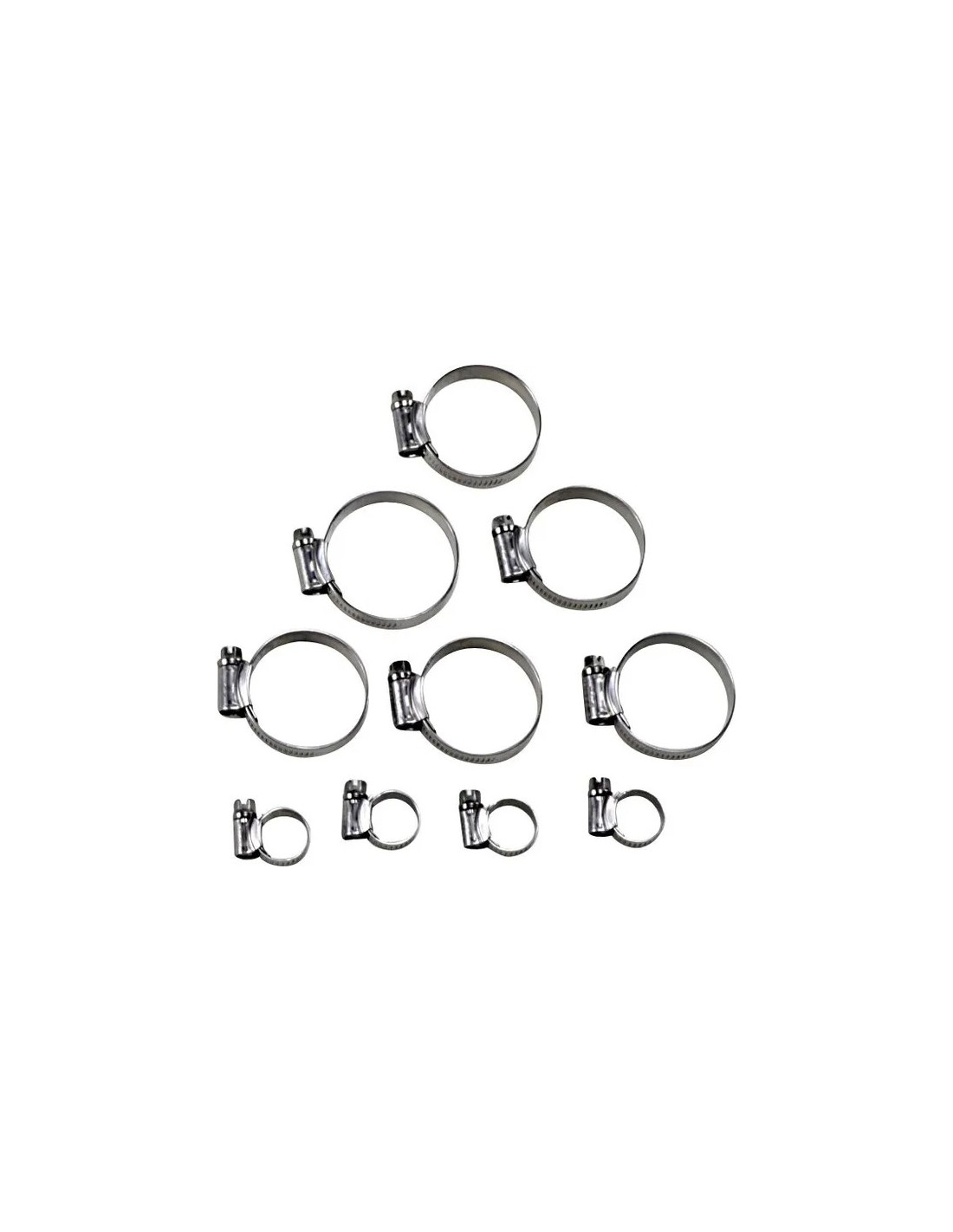 Abrazaderas de acero inoxidable 18/8 de calidad marina con bordes redondeados, interior liso y superficies pulidas; incluye todas las abrazaderas necesarias para instalar el kit de manguera de radiador