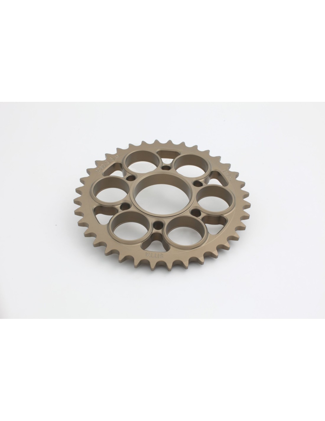 Las coronas SITTA son una perfecta conjunción entre estética, ligereza y duración que sólo esta marca Italiana puede brindarte. - Fabricadas en Italia mediante precisa maquinaria CNC por ambas caras. - Ergal certificado AW 7075 573-3 - Disponibles en todos los pasos y tamaños (entre 34 y 71 dientes). - Tratamiento anodizado en óxido duro. - Máxima duración y extrema ligereza - Posibilidad de fabricación a medida de cualquier tipo de corona NOTA IMPORTANTE: Si no encuentras tu Ducati en la lista, busca tu corona