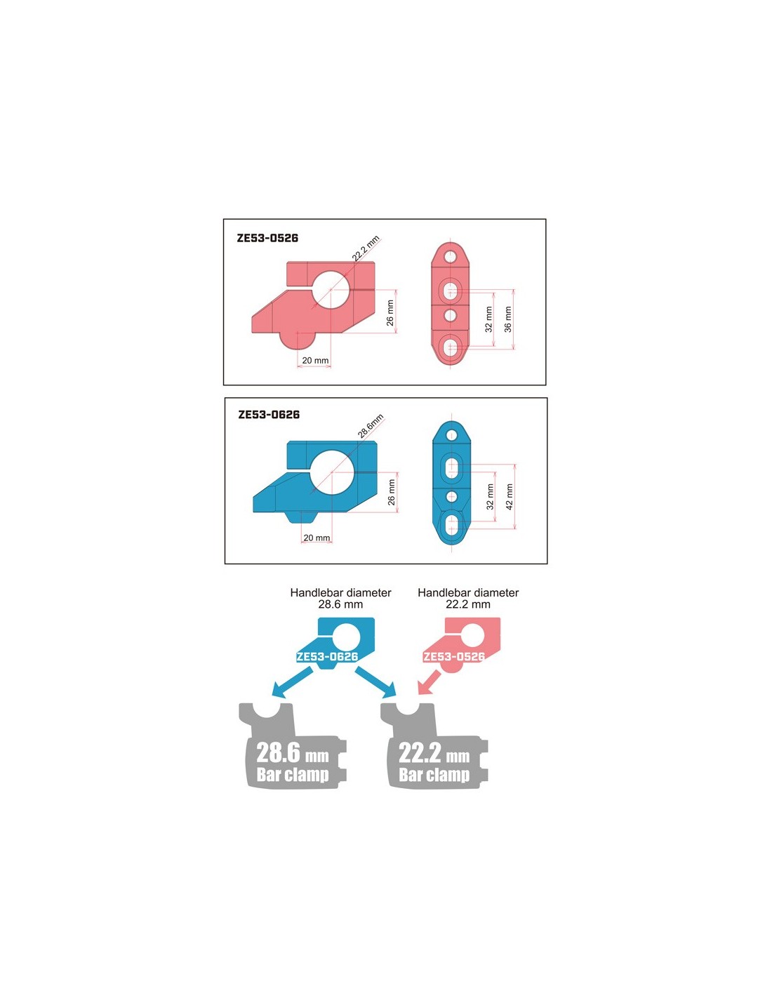 - El kit para manillares de diámetro estándar se puede colocar en soportes de manillar de 22,2 mm. (ZE56-0526/ZE56-05261)