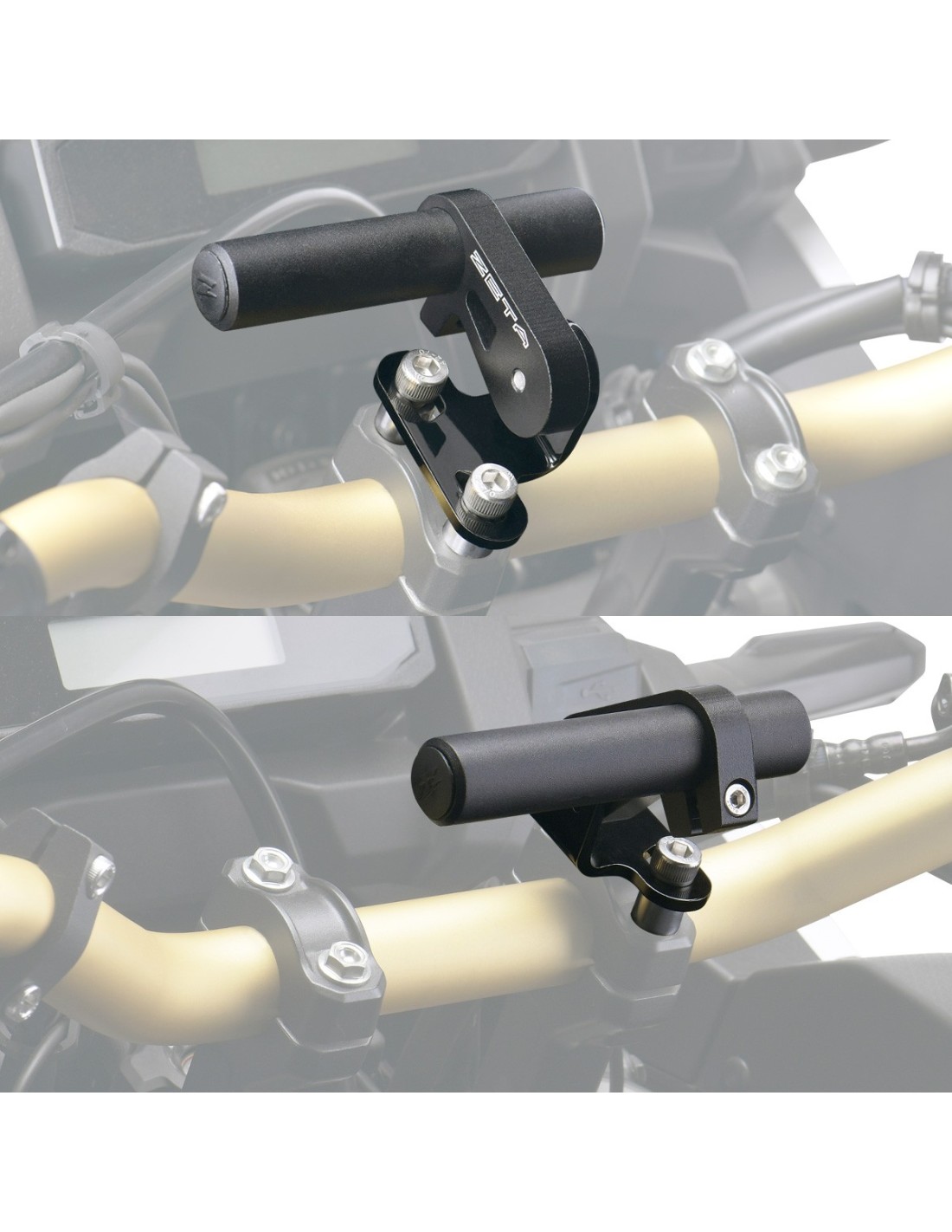 - Una barra de montaje que se fija a las abrazaderas del manillar.
