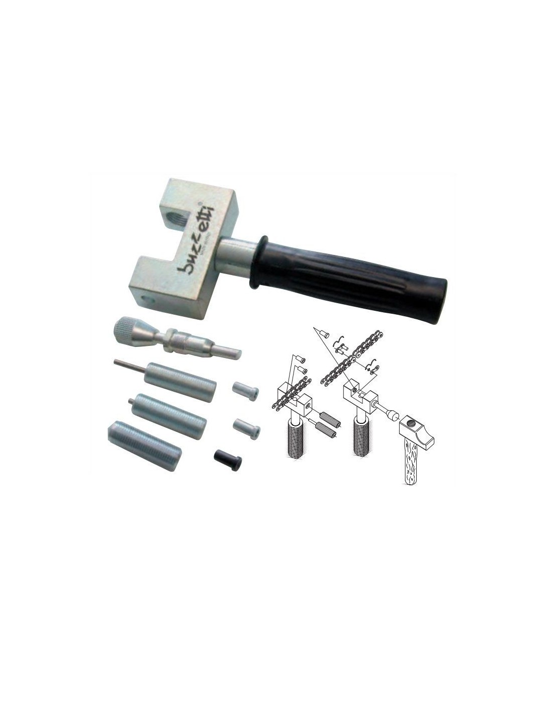 Remacha / corta cadenas profesional. Para cadenas con retenes. Equipado con tornillos
