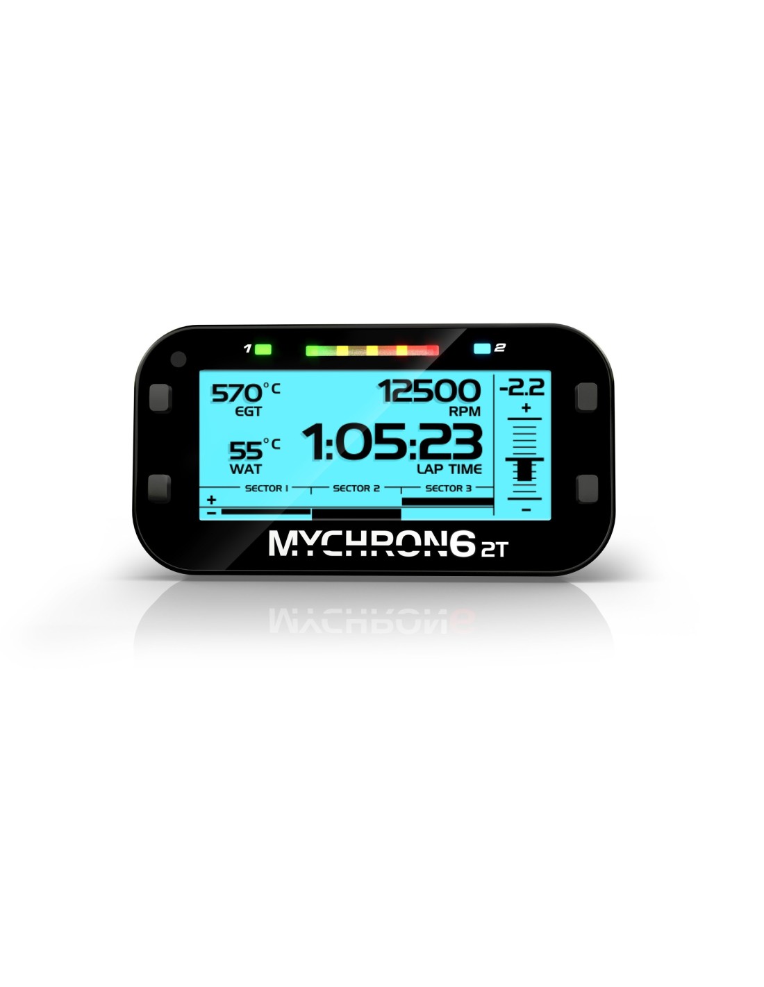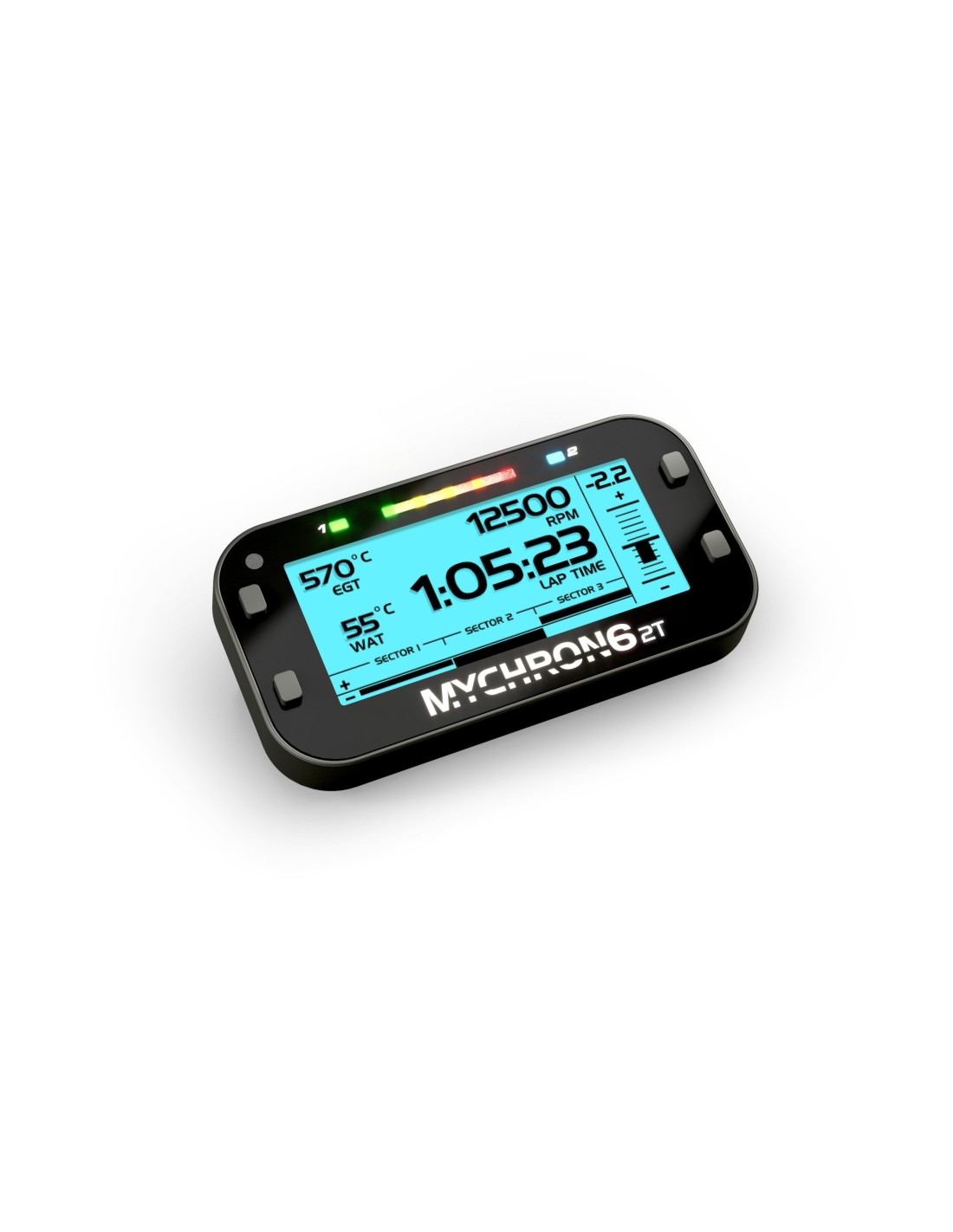 Hoy, MyChron6 2T, con la integración de tecnologías cada vez más avanzadas, como el GPS de alta precisión, la conectividad Bluetooth, el segundo CAN para sensores adicionales y la batería de larga duración, representa más que nunca la herramienta indispensable para cualquier piloto de karts y confirma su posición de líder en el mercado.