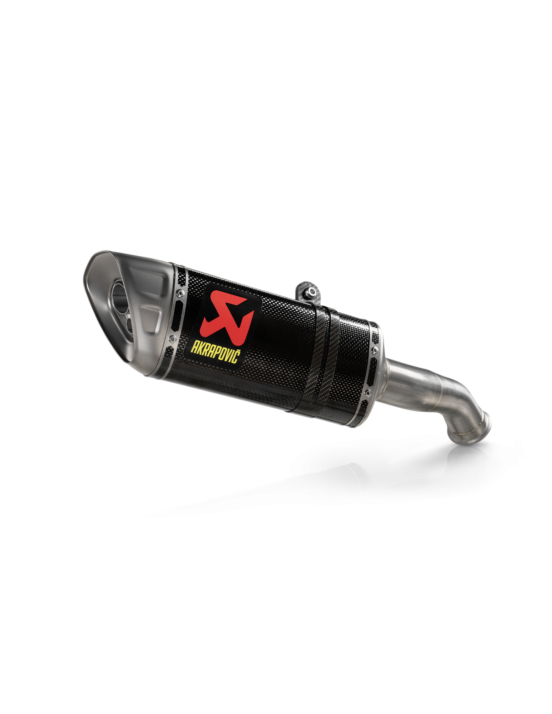 Está fabricado con materiales de eficacia probada en competición, como una funda exterior y una abrazadera de escape de fibra de carbono, un tapón de titanio y un tubo de conexión de acero inoxidable.