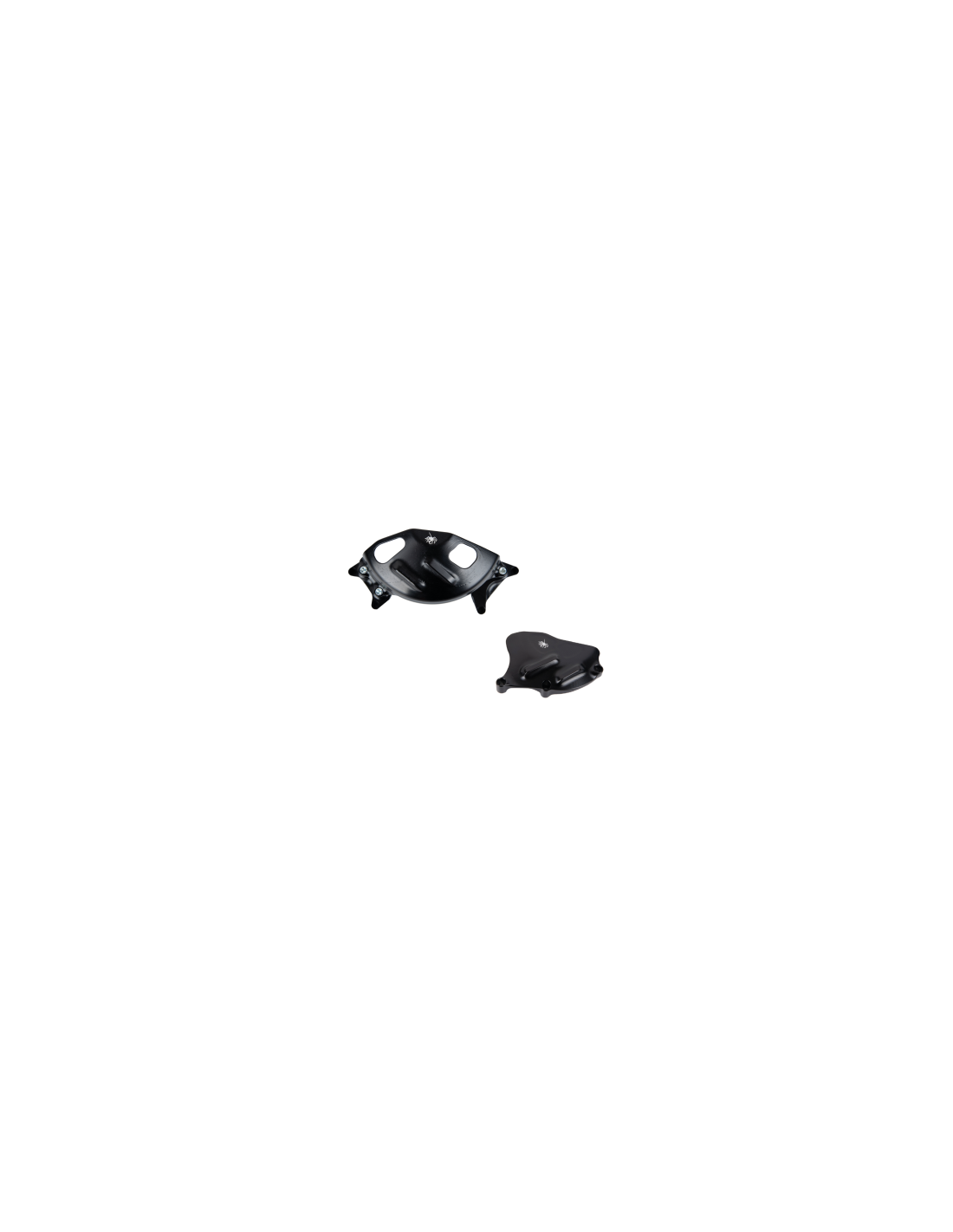 IMAGEN GENERICA. Tapas protectoras de motor fabricadas en aluminio CNC. Fabricadas para un deslizamiento óptimo en los puntos de contacto y máxima resistencia en los puntos críticos. Acabado en negro brillo. La tapa se fija con tornillos directamente sobre la cubierta original. Kit compuesto por 2 tapas.