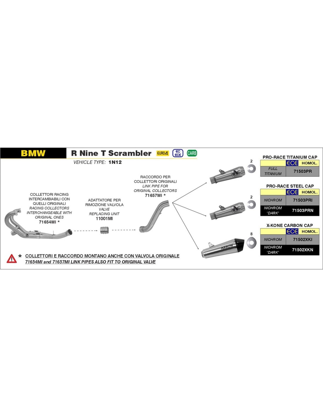 ARROW CONECTOR CENTRAL 71657MI IMPORTANTE, SEGUIR EL PLANO, LAS LINEAS CONTINUAS SON OBLIGATORIAS PARA PODER MONTAR LOS ESCAPES, LAS DISCONTINUAS SON OPCIONALES.