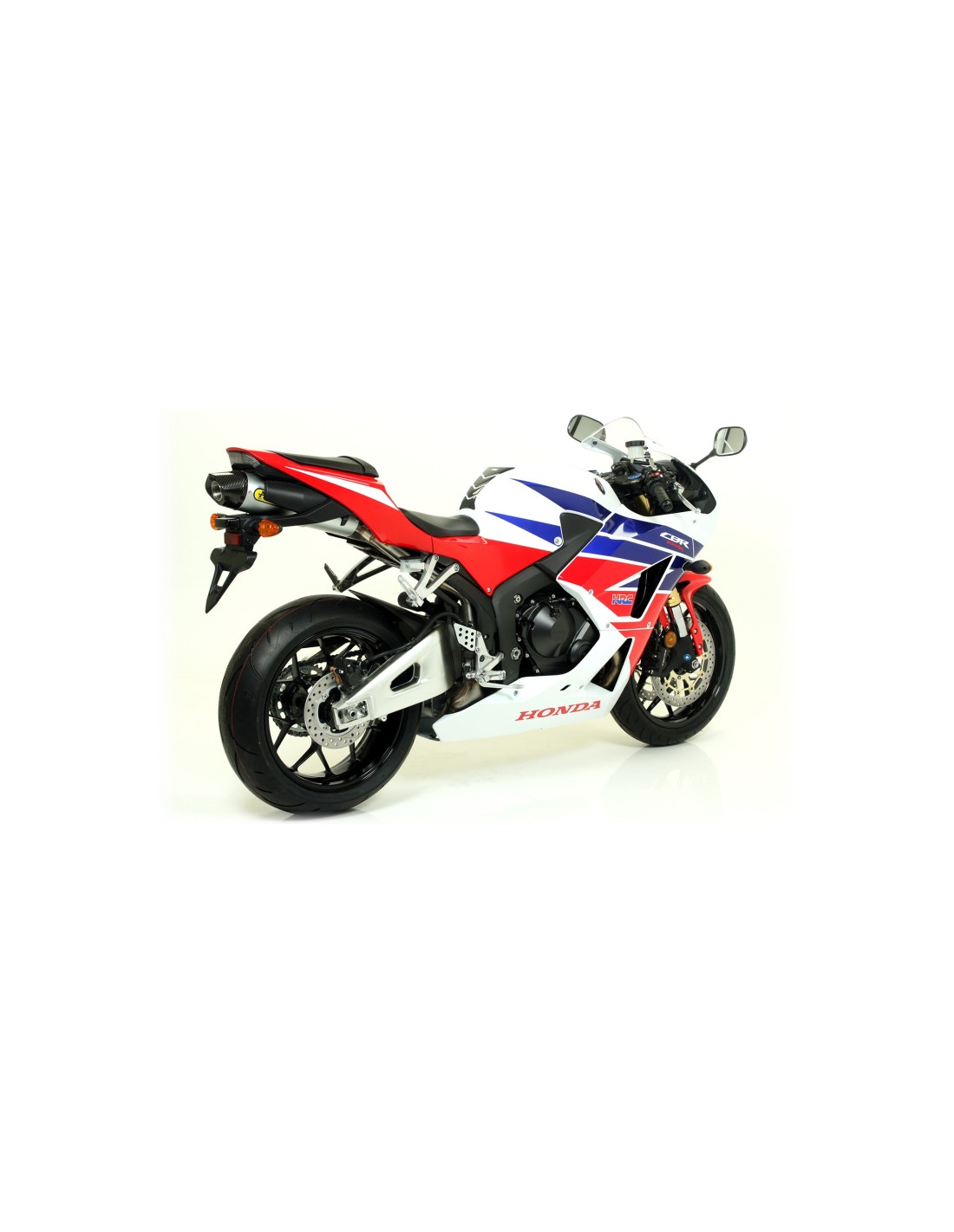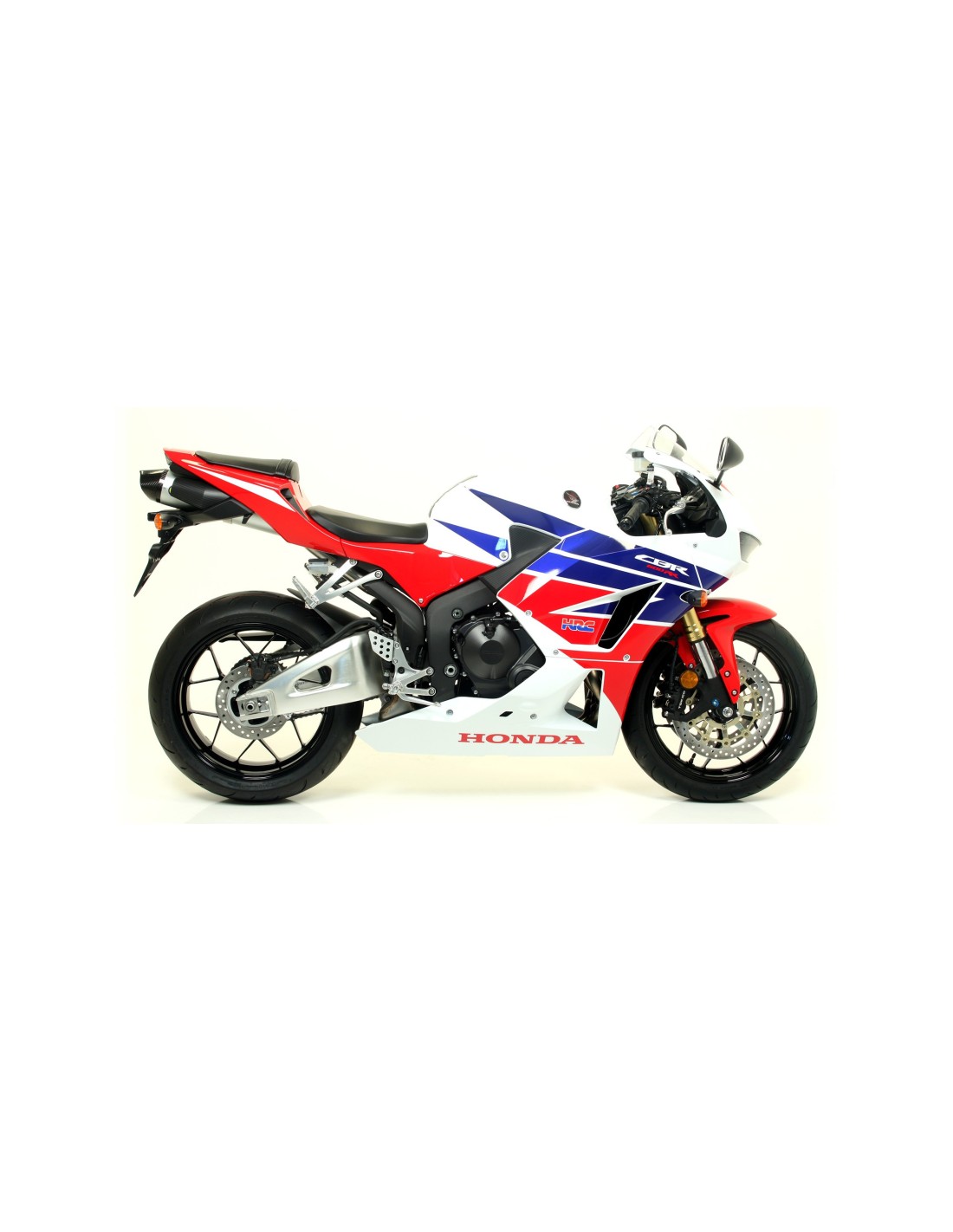 Escape ARROW Indy Race copa carbono. Otra necesidad particular parte sobre la base del desarrollo de la forma de la línea Indy-Race, ya que habían algunas motos en las que por su diseño particular, ninguno de los silenciosos Arrow existentes se les podía instalar. Esta nueva forma cuya sección se asemeja a la forma ovalada de algunas pistas de USA, asi como la fórmula Indy, es un poco más aplastado con respecto a otras, manteniendo un buen volumen interno que favorece la reducción del ruido. En cuanto a las otras características técnicas, no hay muchas diferencias con respecto a las otras líneas de escapes producidas por Arrow. Los componentes internos son de acero inoxidable, el montaje se efectúa mediante soldadura TIG y MIG, el cuerpo del silencioso está disponible en titanio, aluminio o fibra de carbono y en algunos casos está disponible la terminación en fibra de carbono. Los silenciosos de la línea Indy-Race también están disponibles en la versión homologada según la aplicación, con Db-killer. Características titanio, carbono, aluminio, aluminio dark Material del cuerpo acero inoxidable Material interno silencioso acero inoxidable Material del conector carbono Material del terminal posterior abrazadera de aluminio Tipo de fijación silencioso 350 Longitud del cuerpo mm 54 Diámetro de injerto mm 50 Diámetro de salida mm Si Inclusión del dB-killer