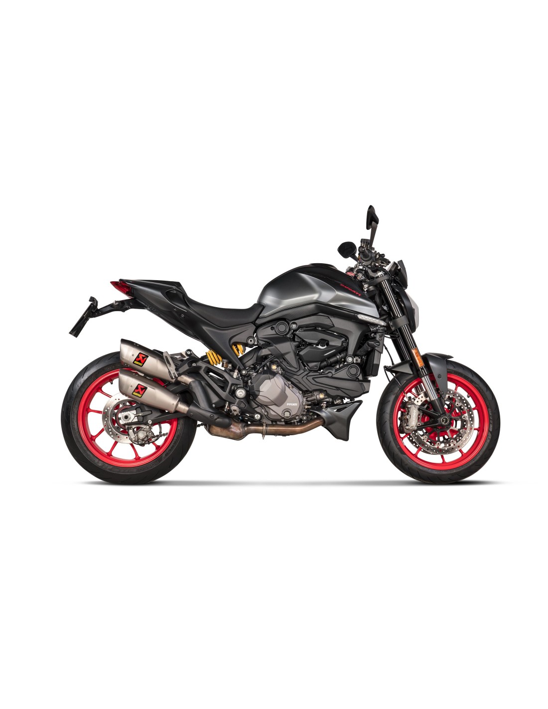 Con un sonido profundo y dinámico que realza el motor de la moto, la potencia se incrementa en 1,6 kW (2,2 CV) a 8800 rpm, con un par motor de 3,5 Nm a 3100 rpm (probado en el banco de potencia Akrapovič en comparación con una Monster con un escape de serie).