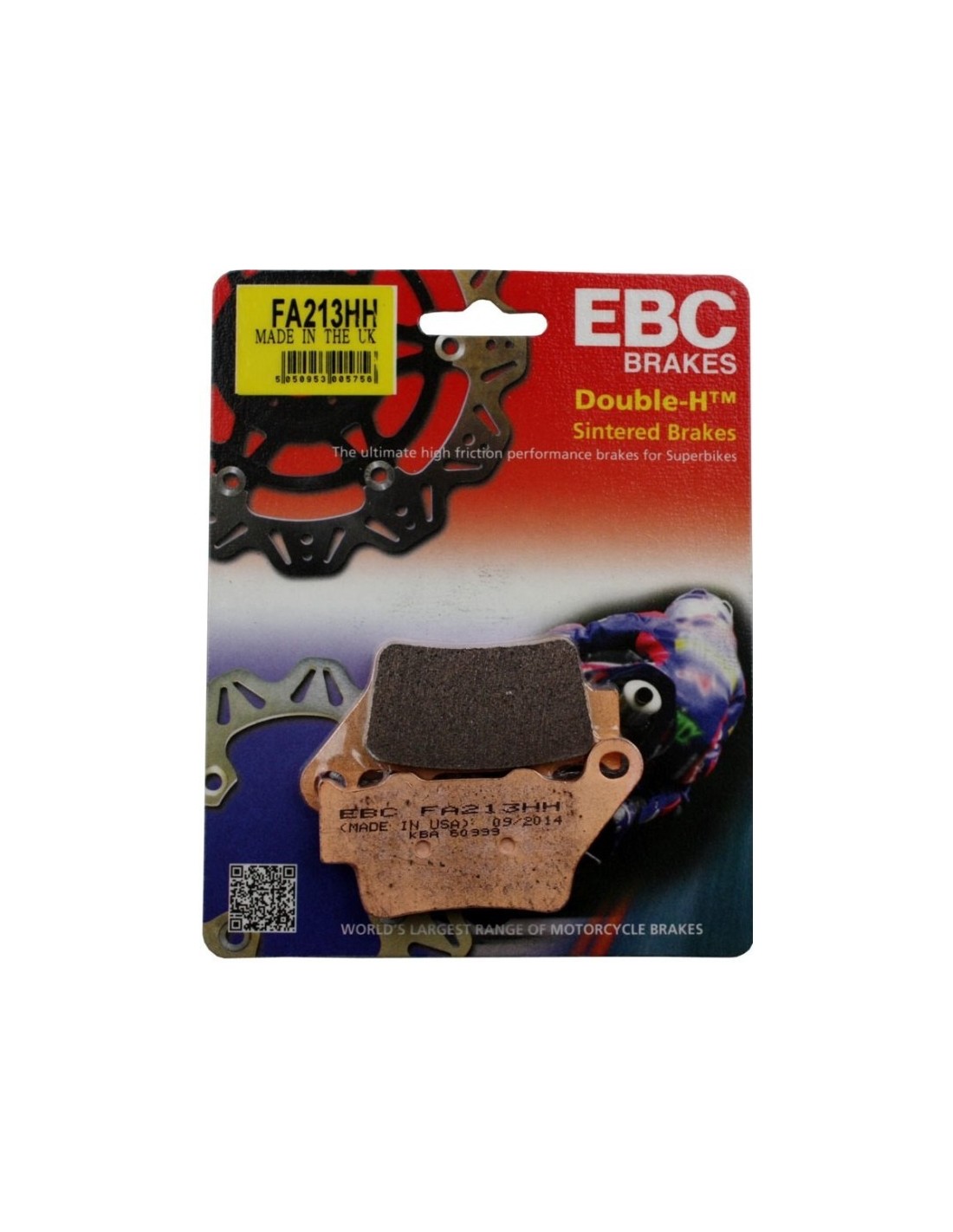 PASTILLAS DE FRENO SINTERIZADAS EBC HH, PARA USUARIOS QUE BUSCAN LA MEJOR FRENADA EN CUALQUIER CIRCUNSTANCIA. El precio indicado es de un solo juego de pastillas, para un solo disco. Si tu moto tiene un solo disco compra una unidad, 1 juego. Si tu moto tiene dos discos compra dos unidades, 2 juegos. Si tu moto no aparece en la lista, mandanos un mail y te damos precio sin compromiso. ¿Qué quiere decir "HH"?, la primera letra H es el nivel de fricción que ofrece la pastilla al frenar en frío, y la segunda letra H es el nivel de fricción o agarre de la pastilla en caliente. Actualmente el nivel H es el más alto con el que se puede calificar una pastilla de freno, de modo que esta pastilla ofrece una frenada envidiable a cualquier temperatura. No desgasta prematuramente el disco como muchas otras pastillas, porque ya en frío ofrece buena frenada, no como otras pastillas que en frío no frenan, sino que rascan el disco sin frenar y eso junto con la mayor presión que hay que aplicar es lo que acaba formando el surco en el disco. En situaciones de altísimas temperaturas normalmente las pastillas de freno se degradan rápidamente, sin embargo las HH tienen como cualidad un aguante a altas temperaturas realmente impresionante, aguantando más kilómetros y frenadas que ninguna otra con el menor desgaste, y para ayudar a disipar esa tremenda temperatura se usa la placa color plata que viene adherida a la pastilla. No dejes que te lo cuenten y comprueba por ti mismo el porque es la pastilla más vendida del mercado.
