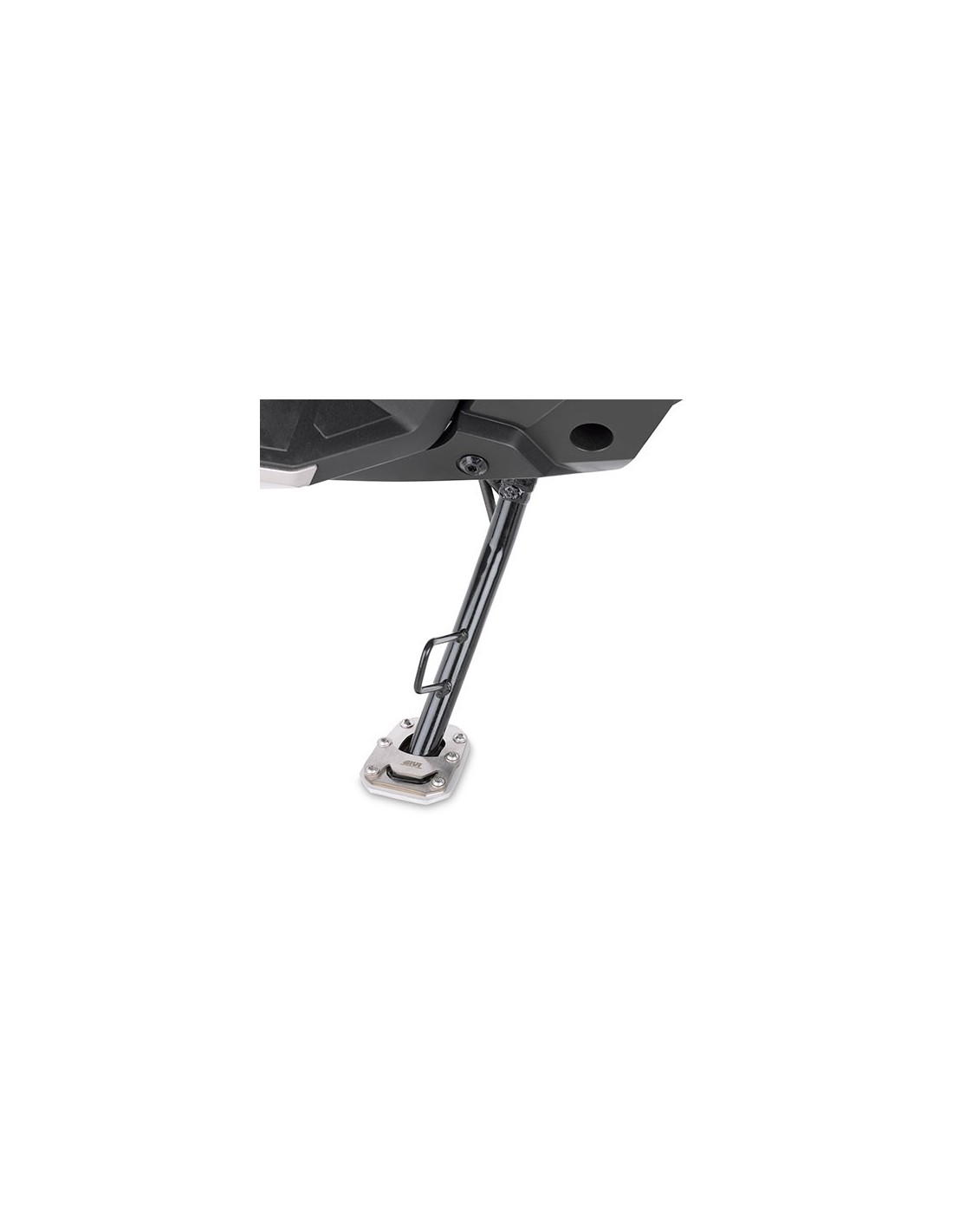 Soporte específico de aluminio y acero inoxidable para ampliar la superficie de apoyo del caballete lateral original.