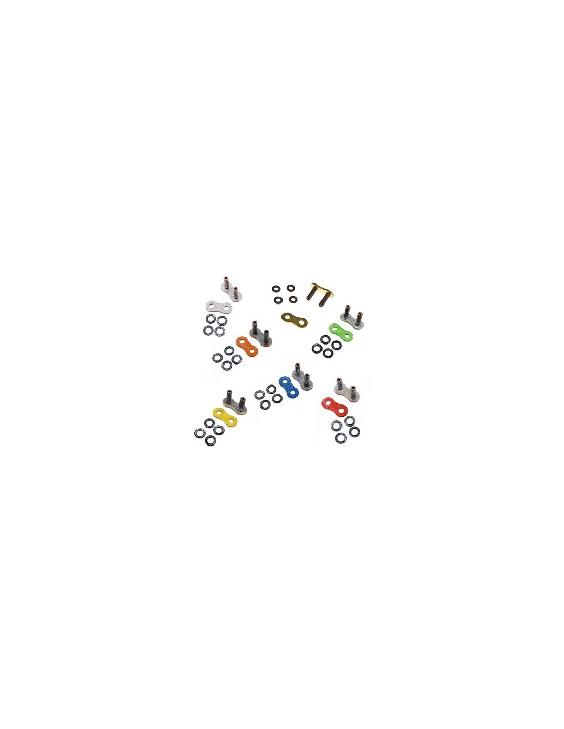 RK 520 XSO eslabon de union de remache hueco de colores Rk es el principal fabricante de cadenas de Japon, durante mas de 40 años es el principal suministrador de cadenas para los grandes equipos de Moto GP y del Rally Paris-Dakar. Debido a la forma de los retenes en x la cadena esta sellada por 64puntos evitando la perdida de lubricacion. 4 Puntos de sellado 30% mas de vida