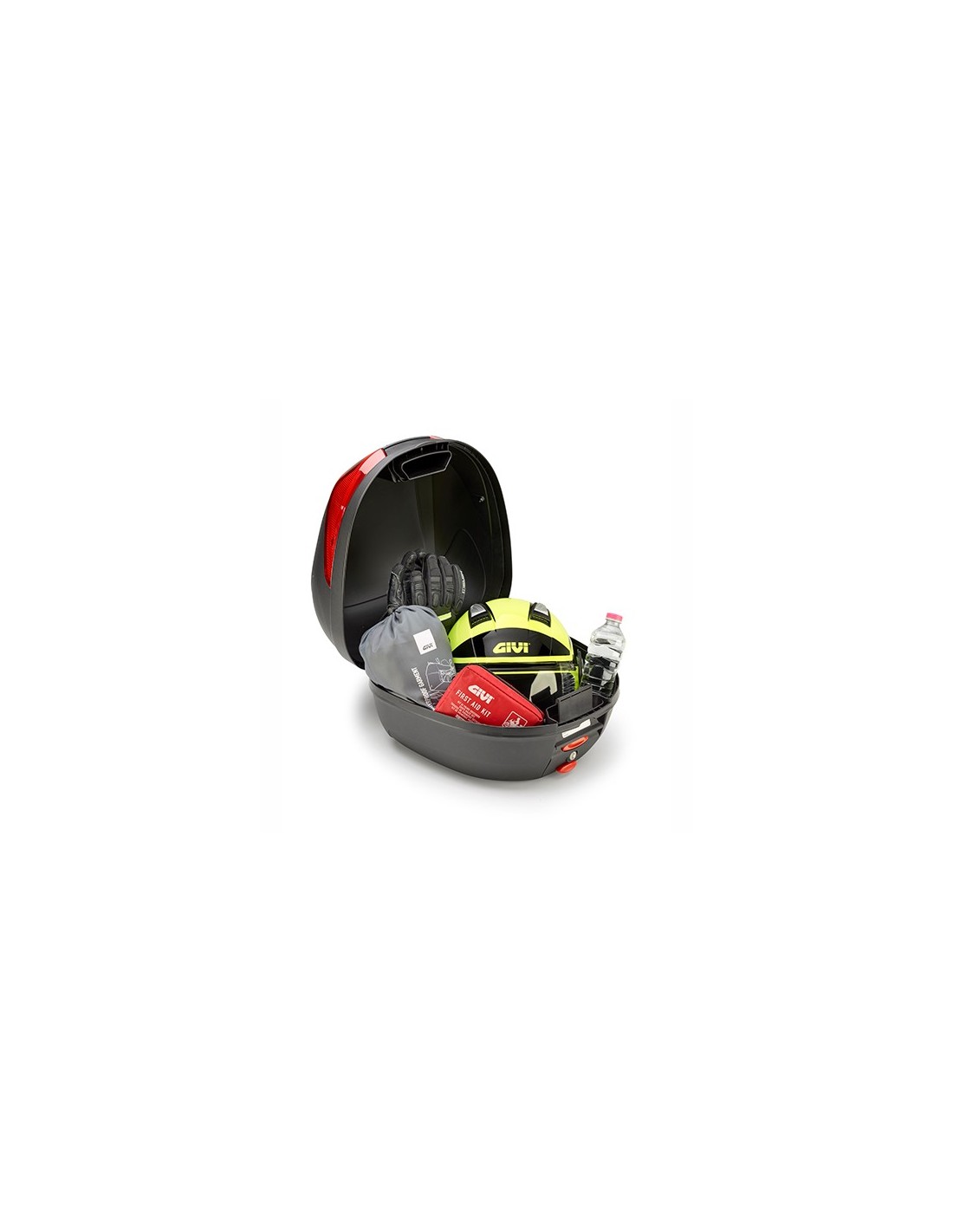 Baúl MONOLOCK® 29 L. negro con catadióptricos rojo. Incluye parrilla y kit universal
