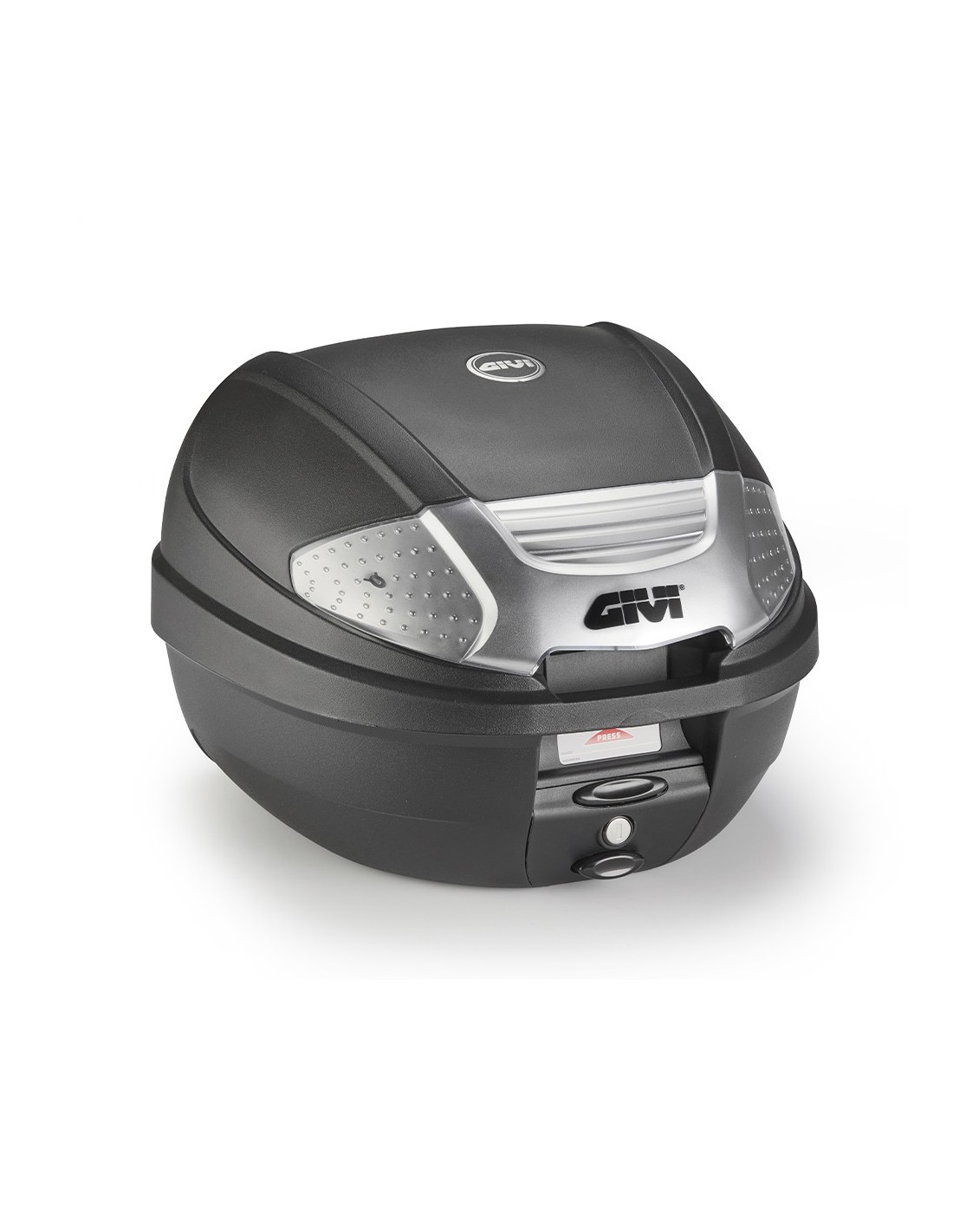 Baúl Tour 30 L. (negro) con catadioptrico pintado interiormente de color plateado, bloque Micro 2. Icluye parilla y kit de fijación universal.