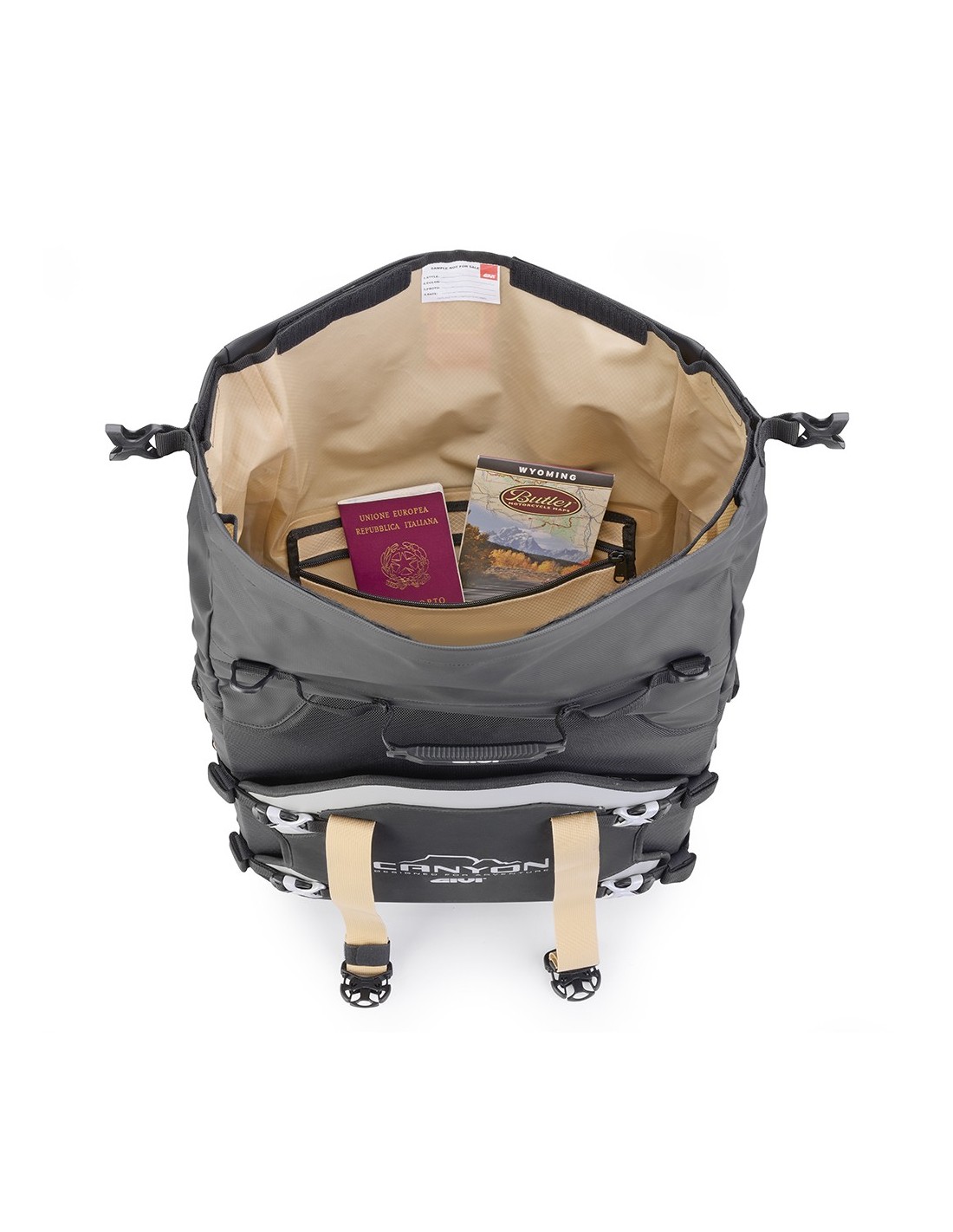 - Sistema modulable de ampliación de la carga: dotado de ojales para el sistema M.O.L.L.E en los laterales, que permite fijar también otros modelos de la gama Canyon, como la GRT730, o pequeños accesorios