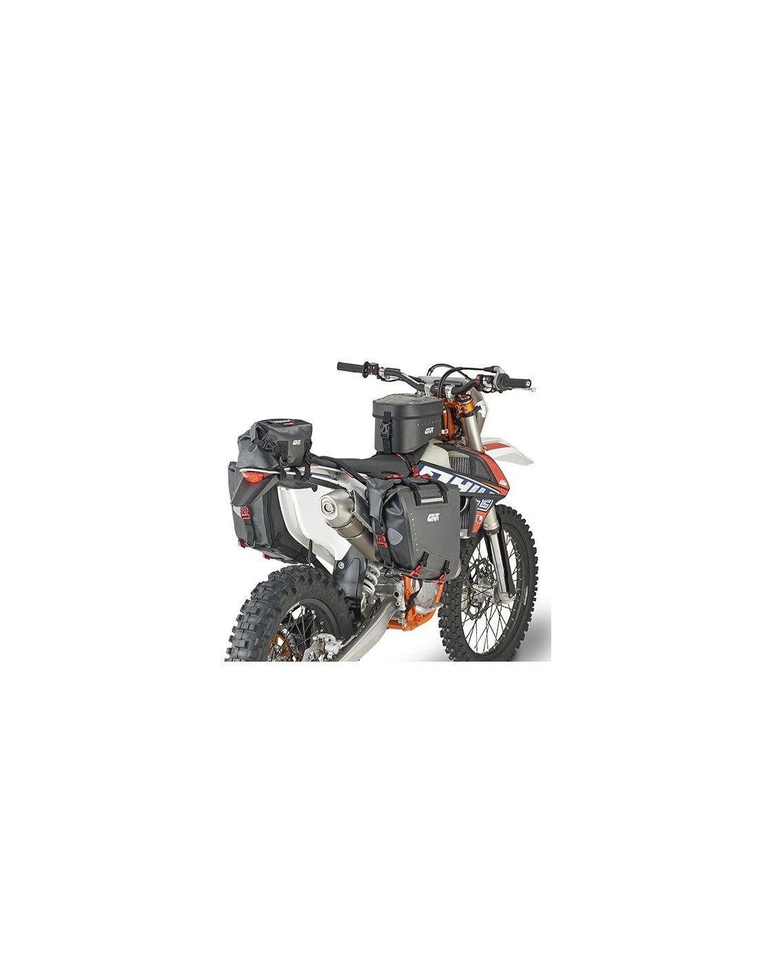 La bolsa puede ser montada sobre otras bolsas, sobre el guardabarros delantero o trasero o combinada con la GRT718