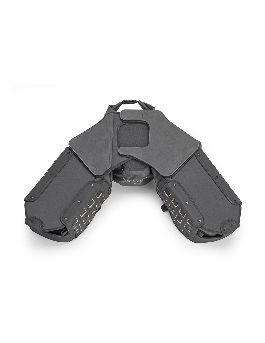 Sistema de carga modular en herradura, compuesto por 2 bolsas laterales de 16 litros y 1 bolsa trasera de 12 litros